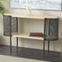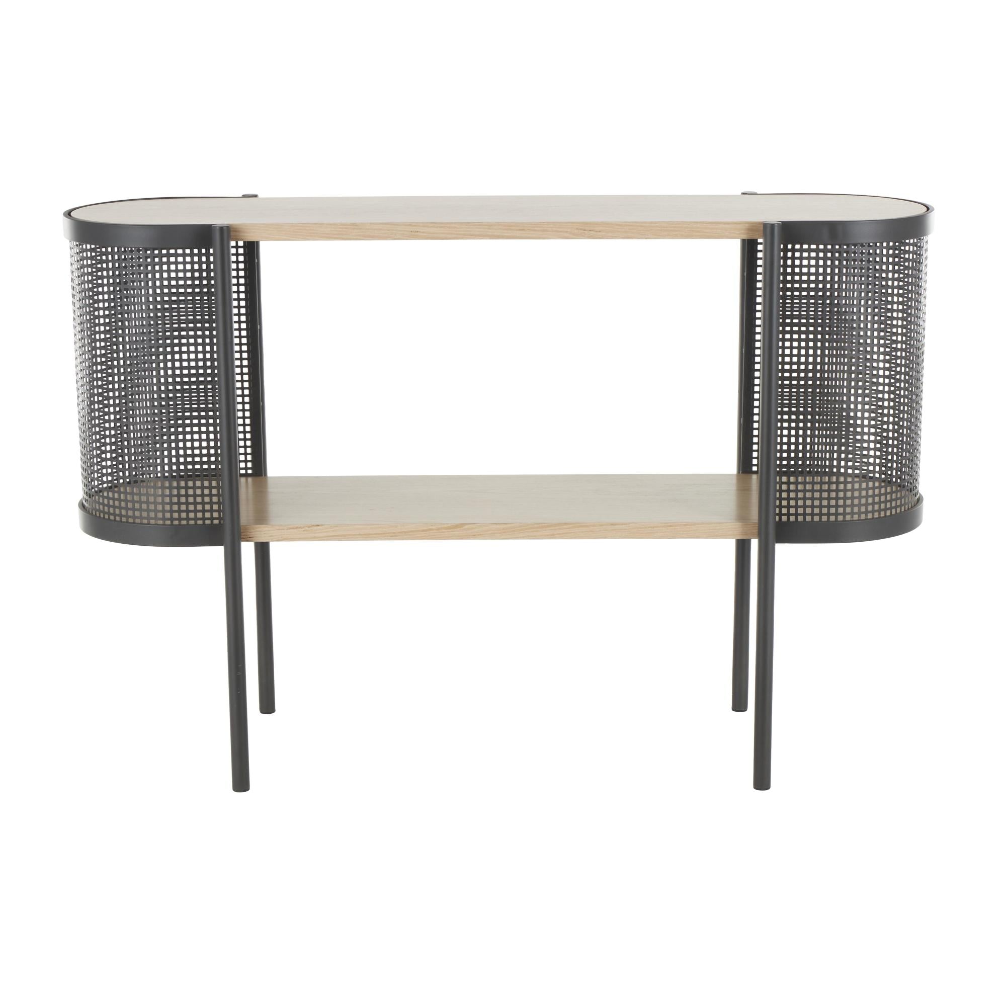 •This MDF console table comes with a two-toned shelf and mesh side panels that add to its charm