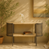 This table can be placed in living rooms or hallways as a stylish storage solution. This console table has a completely finished back. This item ships in 1 carton. Suitable for indoor use only. This item ships fully assembled in one piece. Maximum weight limit is 100 lbs. This is a single entryway table. Mdf console table features 2 fixed shelves. Traditional style.