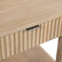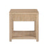 •This wood end table includes a slatted design and a convenient drawer with a handle, providing both style and practicality to your living space