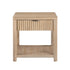 Light Brown Wooden Slatted 1 Drawer Side End Accent Table with Natural Wood Grains and Silver Handle