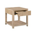 The versatile end table can be paired with a chair or sofa in your living room, or used as a nightstand, styled with books, greenery, and small decorative items. Adjustable levelers provide stability on uneven surfaces. This accent table has a completely finished back. This item ships in 1 carton. Light accent table features a single drawer with full extension drawer glide. Suitable for indoor use only. Some assembly required. Maximum weight limit is 50 lbs. Made in Vietnam. This is a single end table. Mdf accent table features a single fixed shelf. Traditional style.