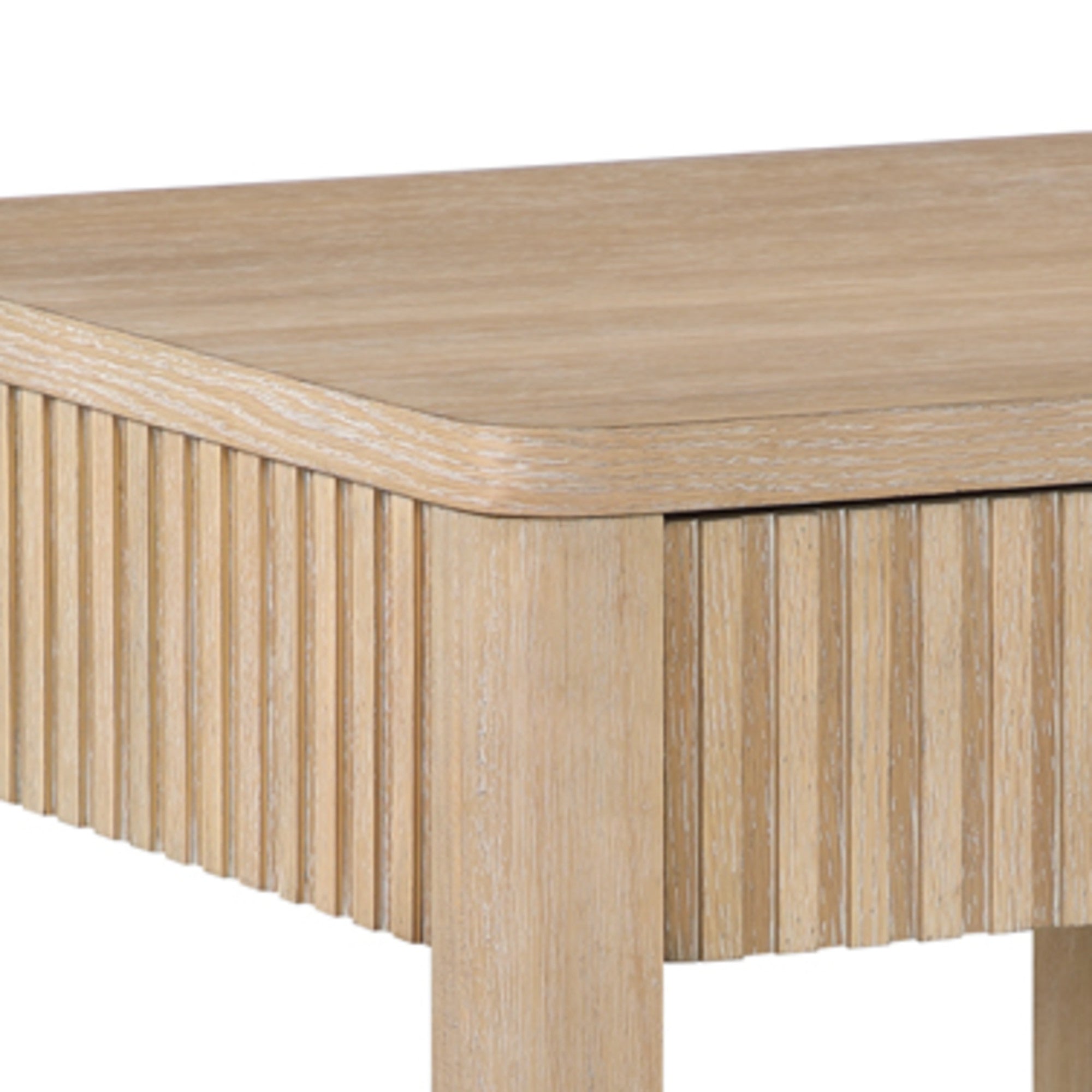 •Washed living room table boasts a slatted linear pattern and a sleek rectangular shape that fits well in modern spaces