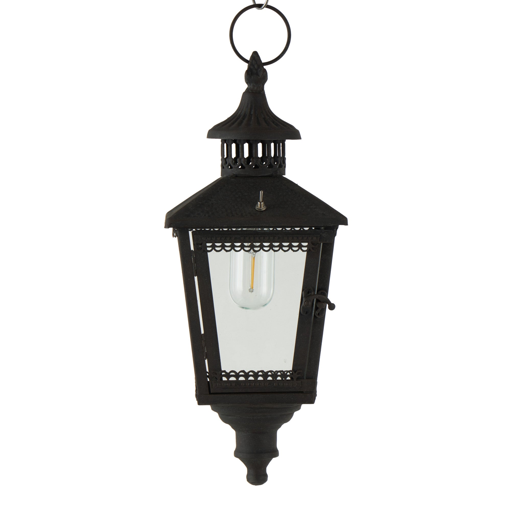 •This iron decorative candle lantern features a ring handle for easy carrying and hanging