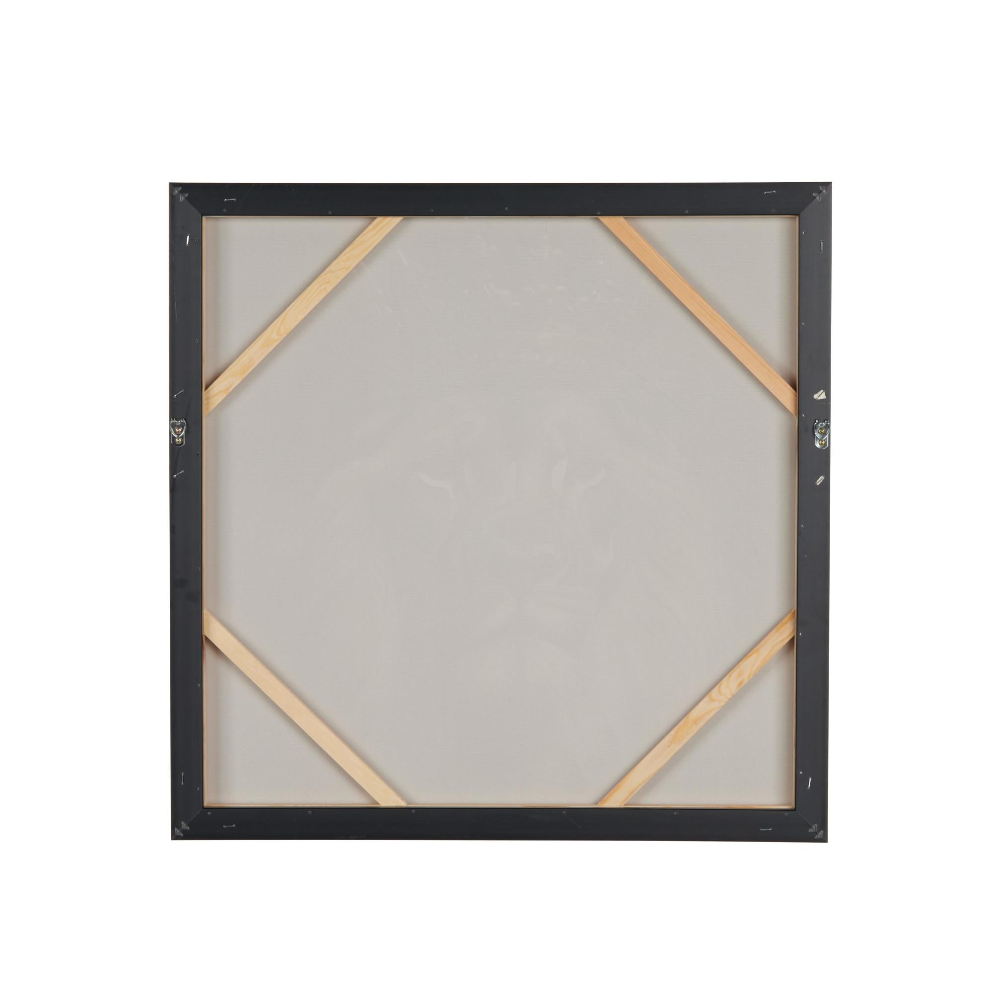 •This modern framed canvas art is crafted with a lion image shaded on a canvas encased in a polystone frame with a carved fir wood backing