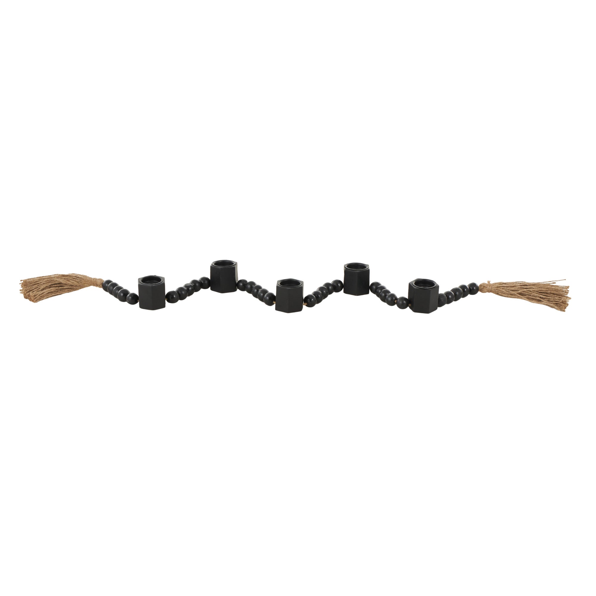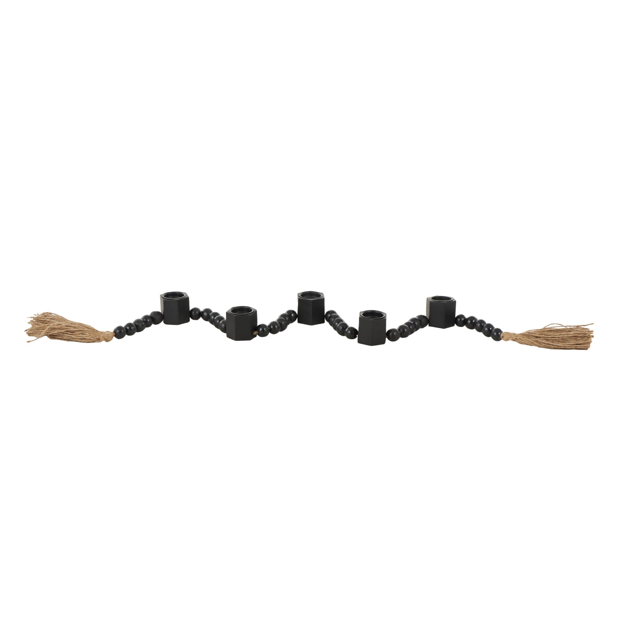 Mango Wood Garland Decorative Candle Holder with Brown Tassel