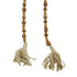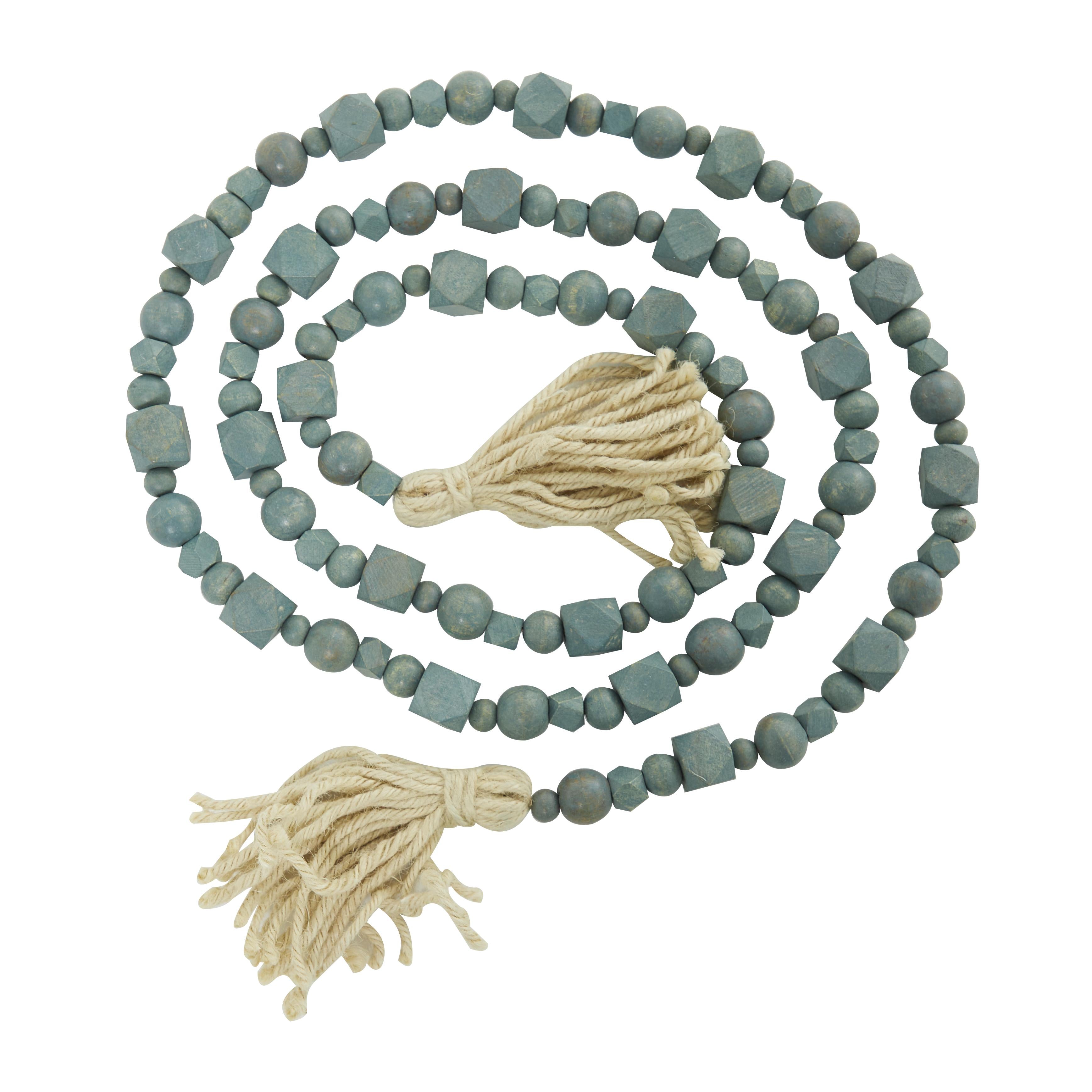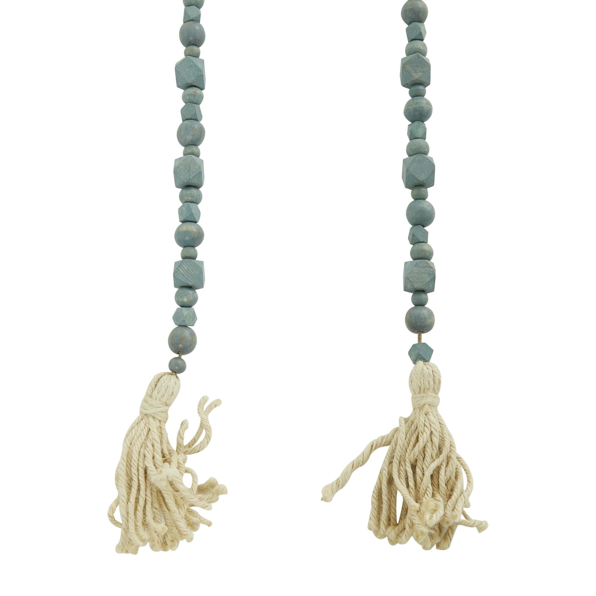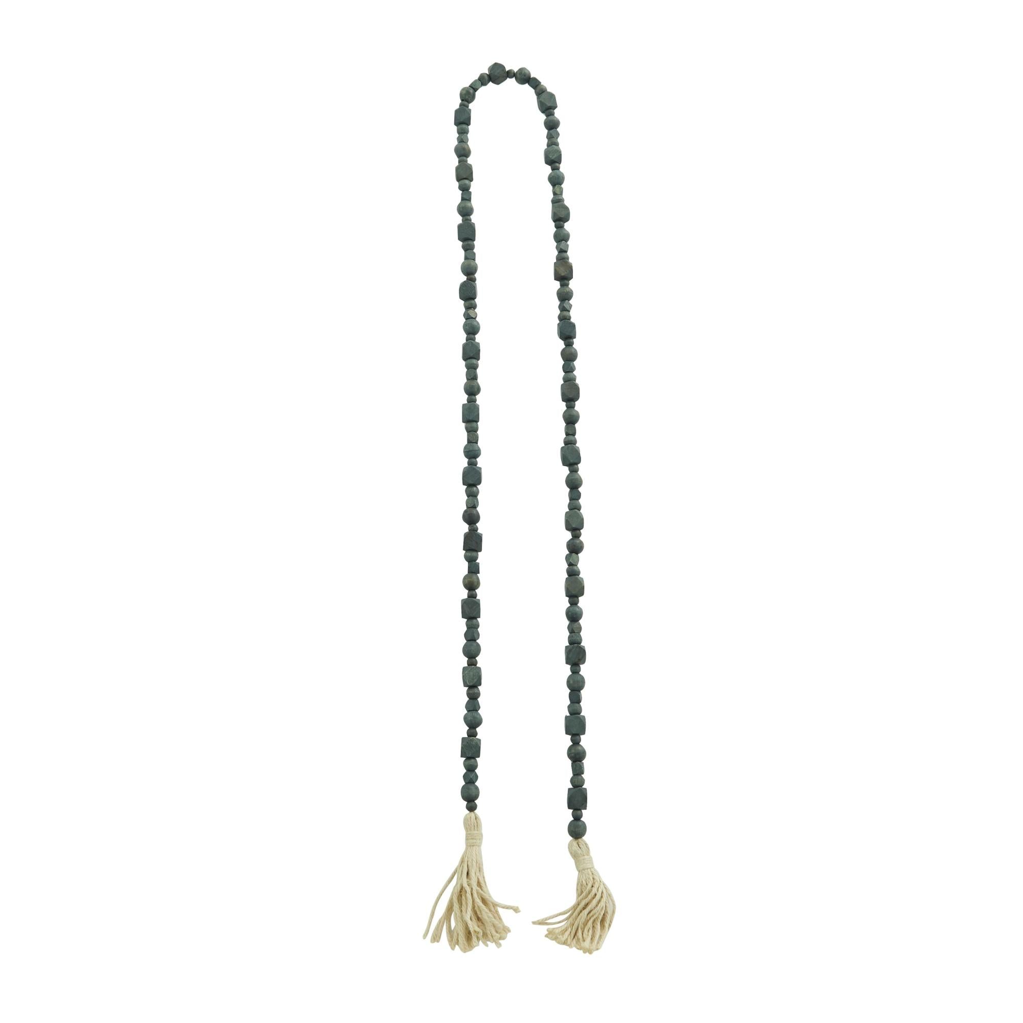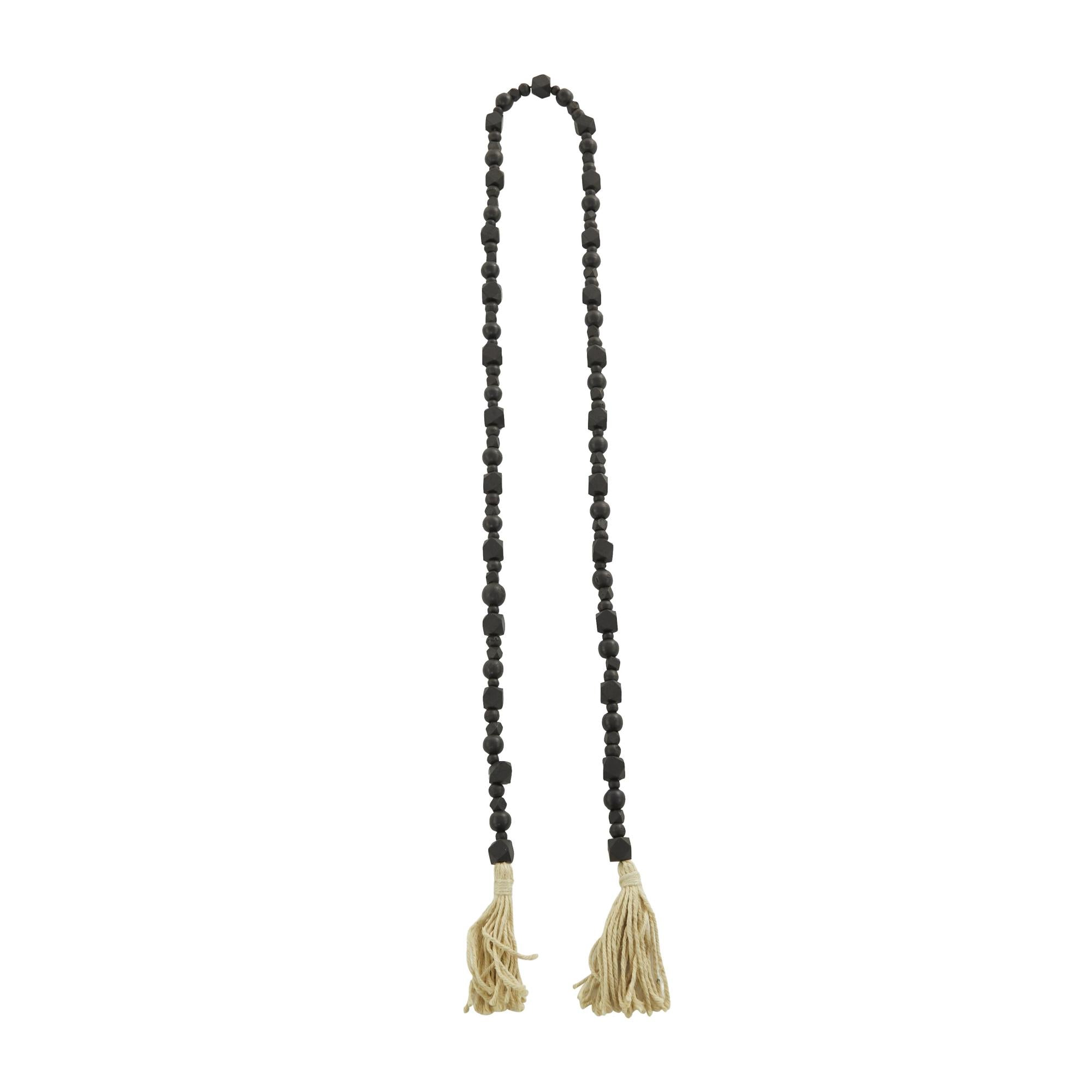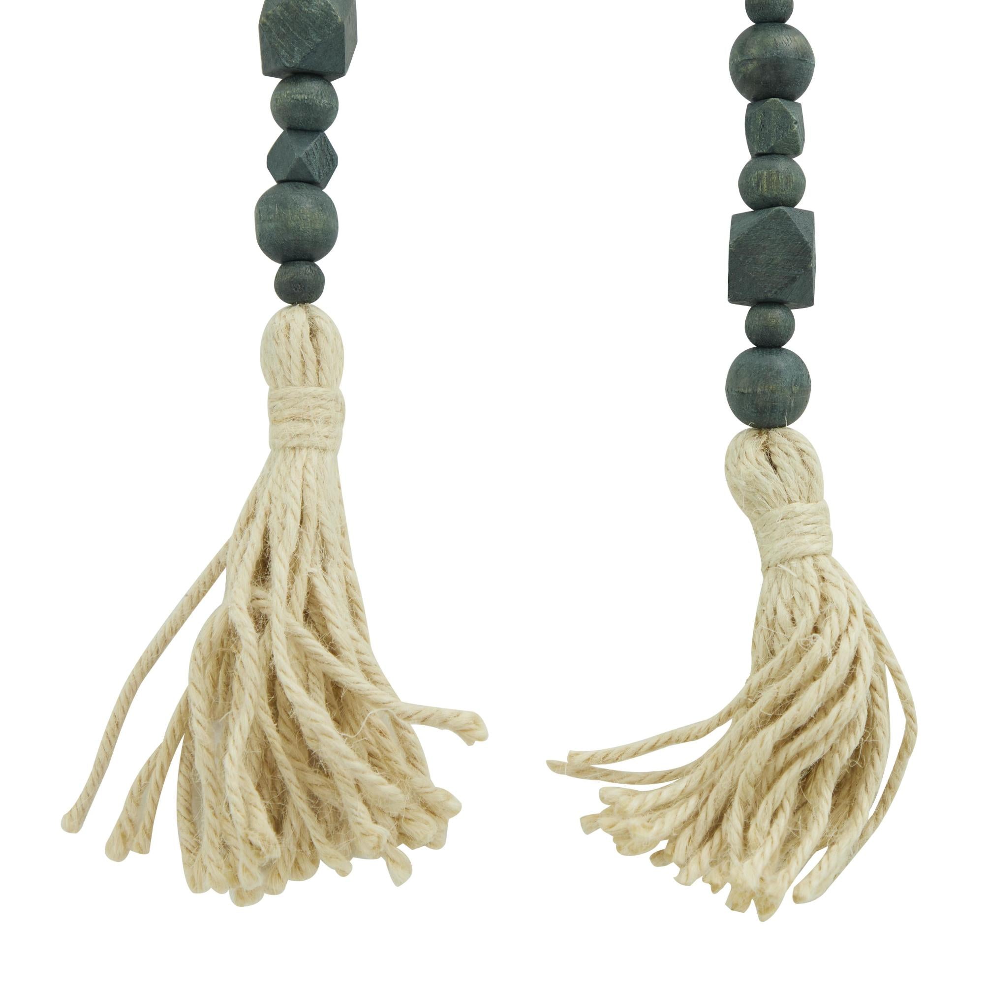 A warm and welcoming way to elevate the look of your tablescape and complement your existing decor. Give your surface space a finishing touch with these beautifully crafted decorative garland. Style the small beads with tassel wrapped around a glass bottle vase or draped across a tray, books, or ladder to bring texture to your decor. This item ships in 1 carton. Mango wood garland with tassel makes a great gift for any occasion. Due to the handmade nature of this item, no two will be alike, there will be slight differences in shape, size, and color. Suitable for indoor use only. This item ships fully assembled in one piece. Made in India. This is a single small beads with tassel. Bohemian style.