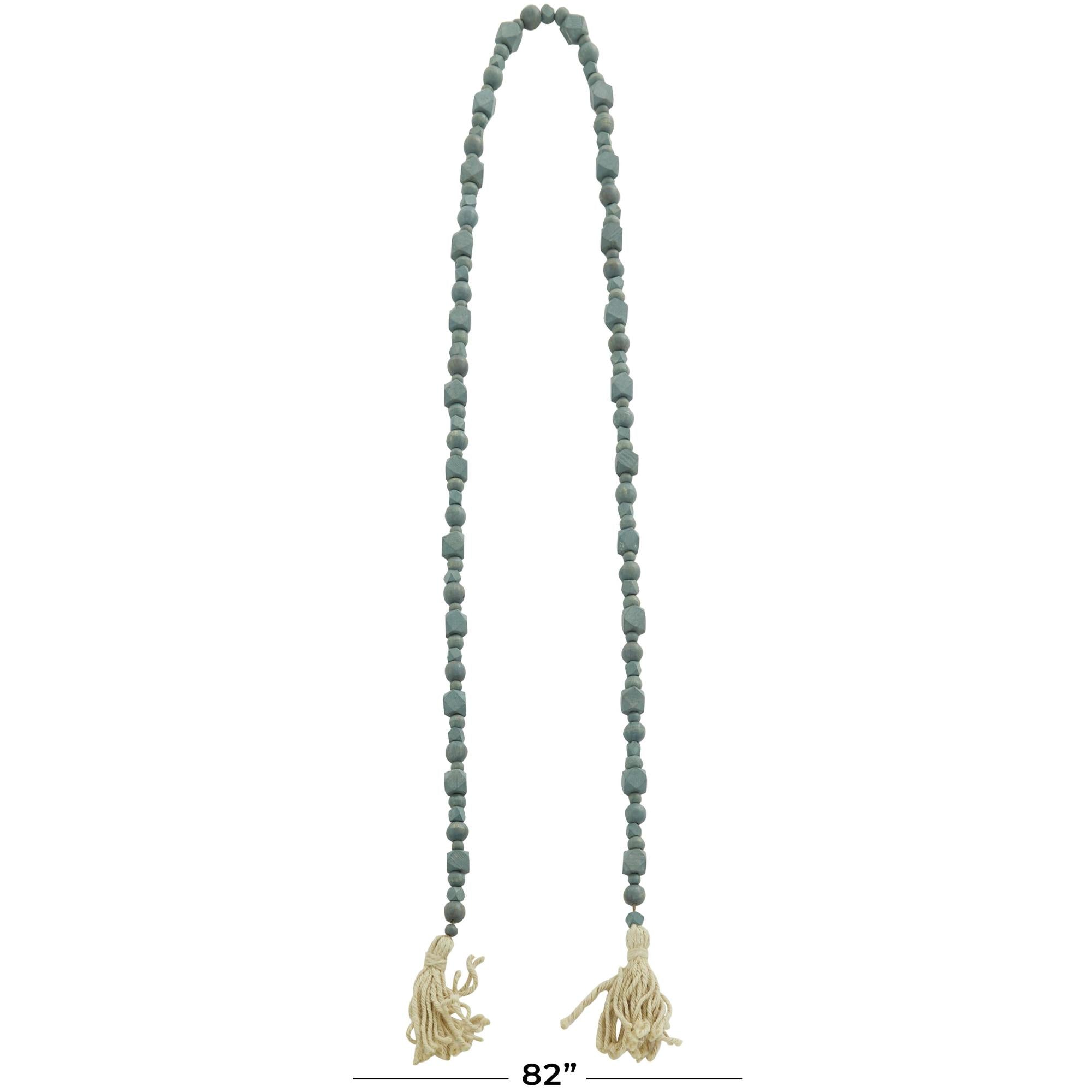 •The beaded garland with tassel is crafted with mango wood and cotton for a durable and organic design