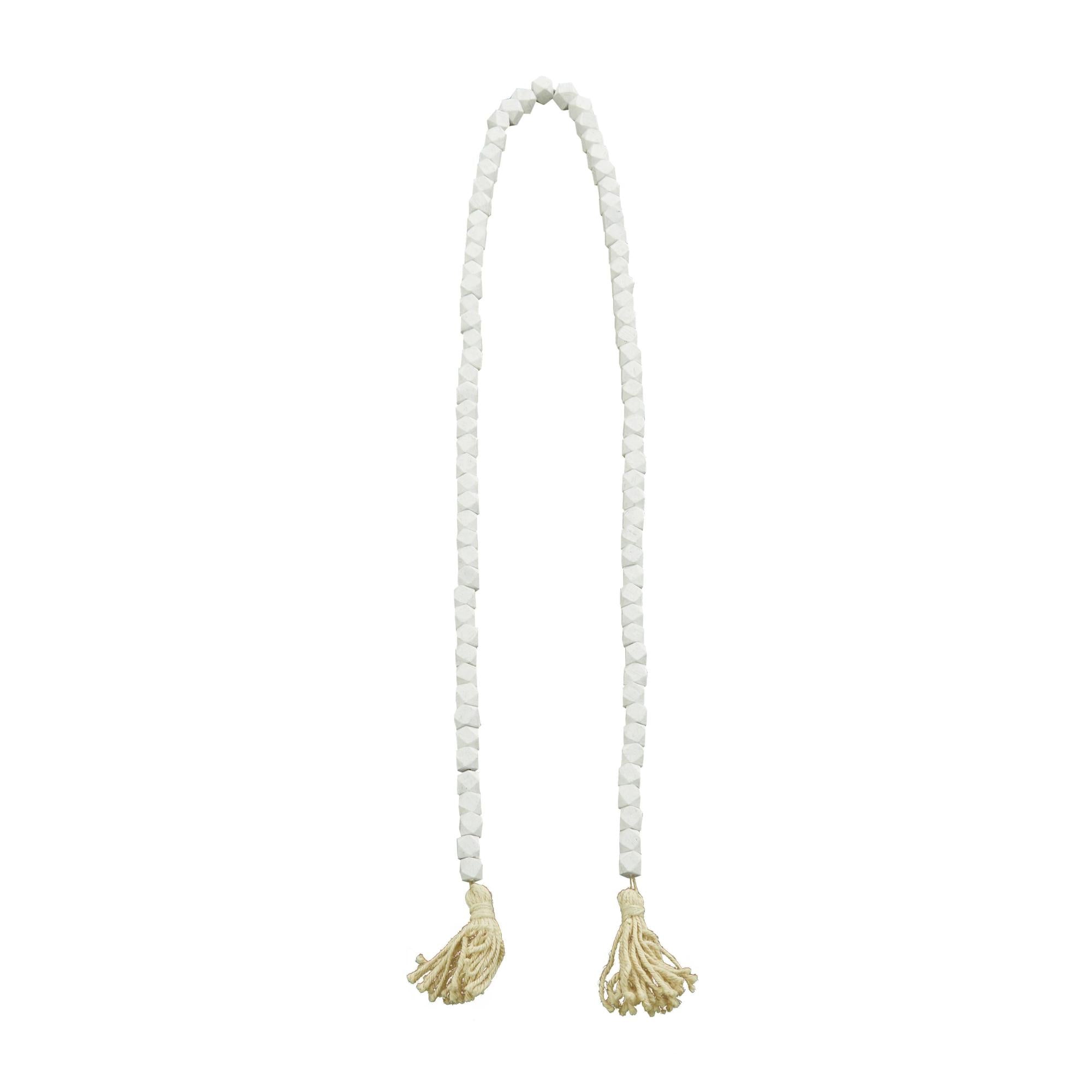 •The beaded garland with tassel is crafted with mango wood and cotton for a durable and organic design