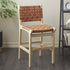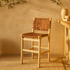 •This mango wood bar stool showcases a handmade woven seat and backrest that captivate guests