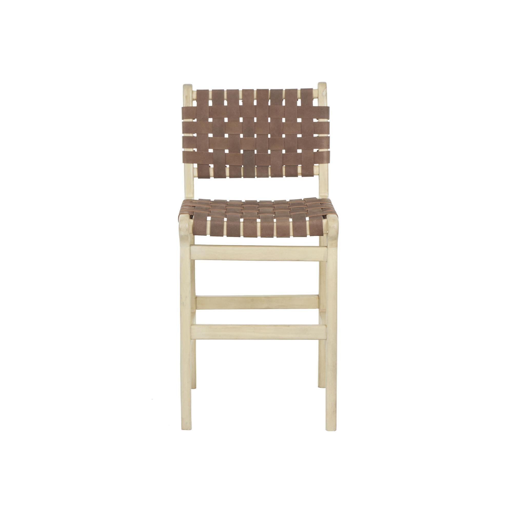 •Crafted from leather strips woven into a mango wooden carved frame, the bohemian bar stool for dining room reflects skilled craftsmanship and attention to detail