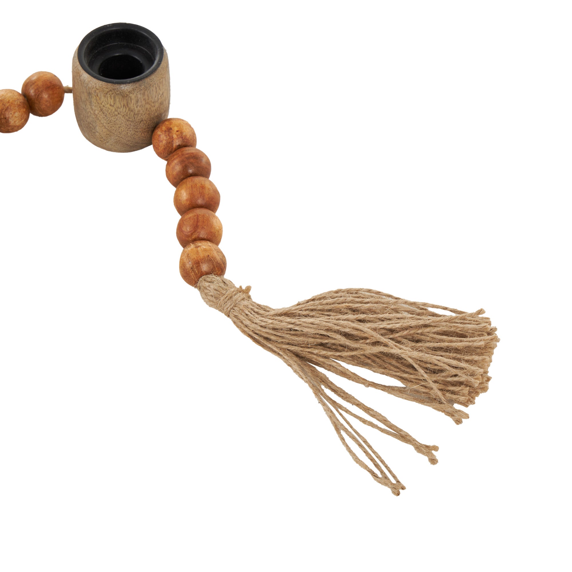 Mango Wood Garland Decorative Candle Holder with Tassel