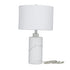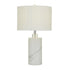 •The polished accent lamp for table stands out with its drum fabric shade and cylinder body with natural marble veins