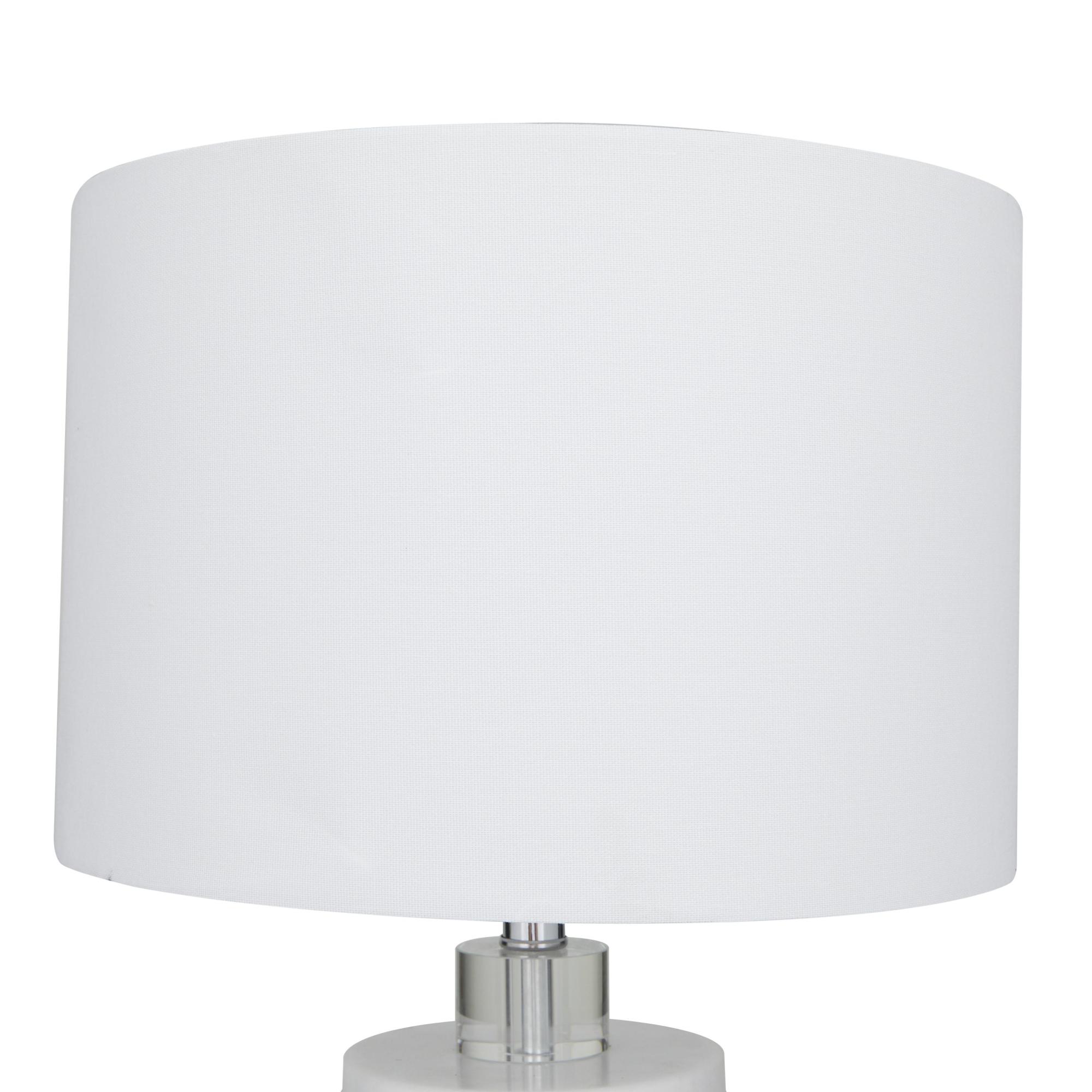 This accent lamp is perfect to add a touch of elegance and brightness to your living room, seamlessly upgrading your interior design. Requires 1 60W Type A E26/Medium (Standard) bulb. This item ships in 1 carton. Comes with a 78" cord length. Suitable for indoor use only. This item ships fully assembled in one piece. Table lamp comes with a drum shaped shade that measures 15 x 15 x 10 inches. Includes a rotary switch. Marble is a product of nature and no two pieces are exactly alike. It is prone to variations in color and/or patterns in the material that add to the beauty and charm of the piece.. This is a single accent lamp. Modern style.