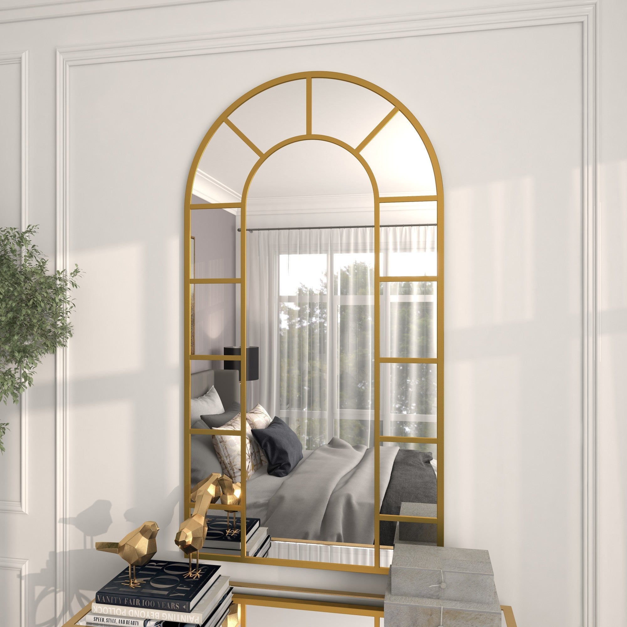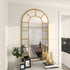 •This matte mirror for wall showcases an arched and rectangular window panes with durable iron framing