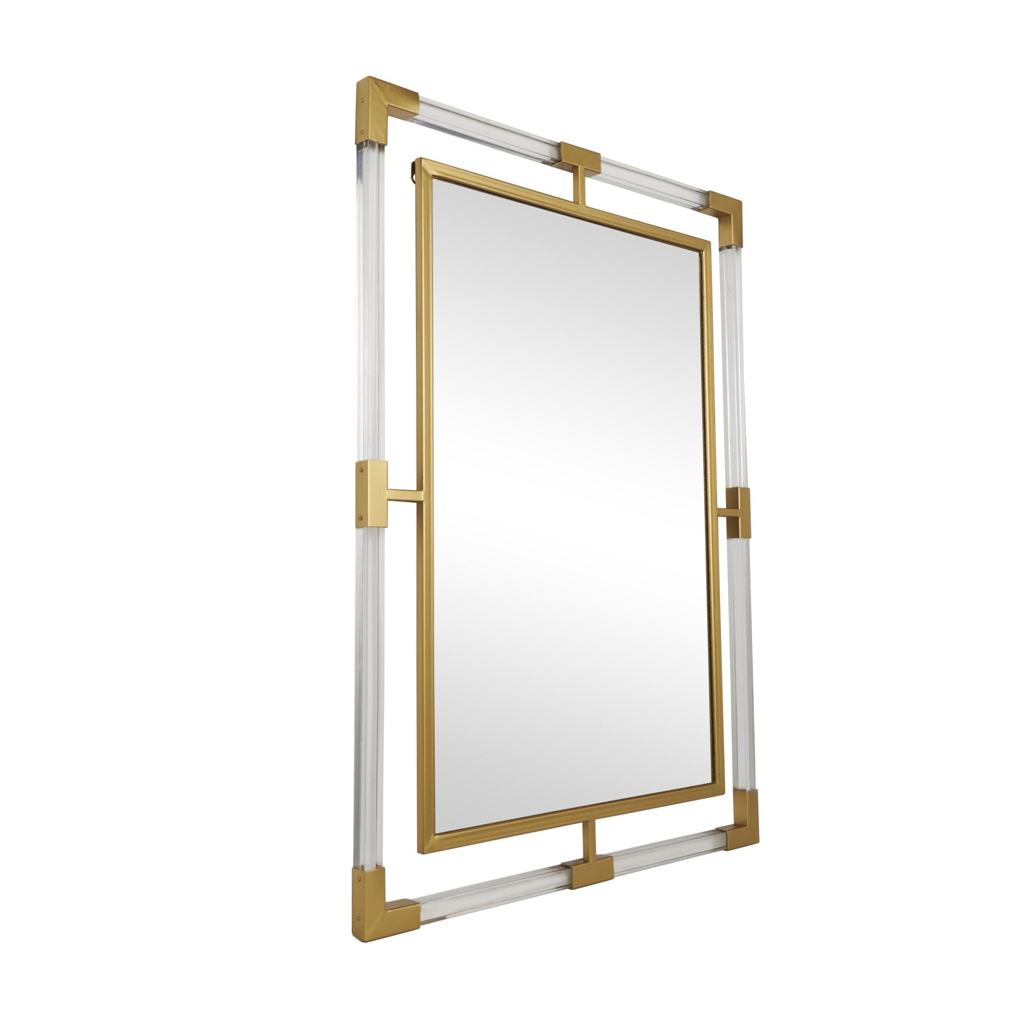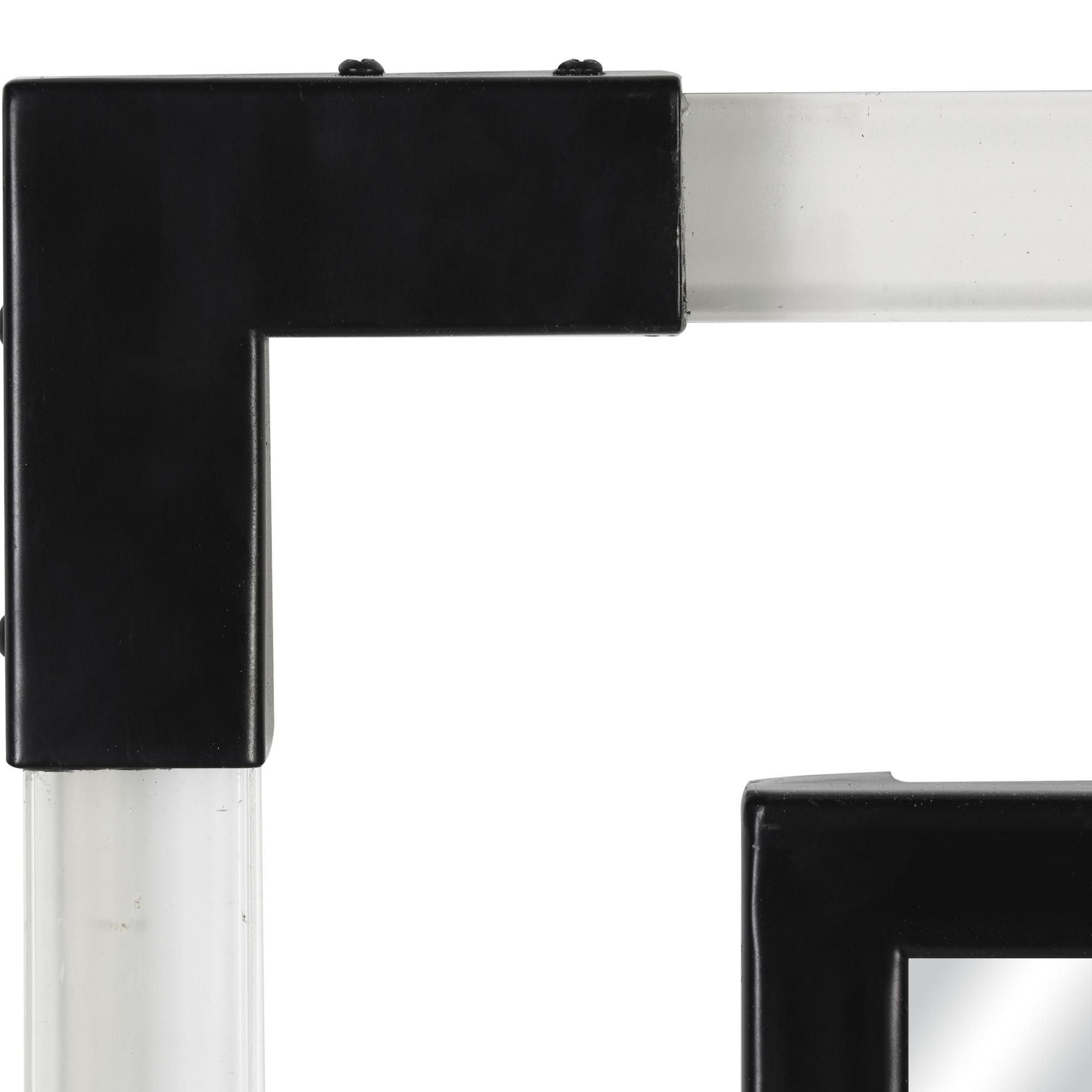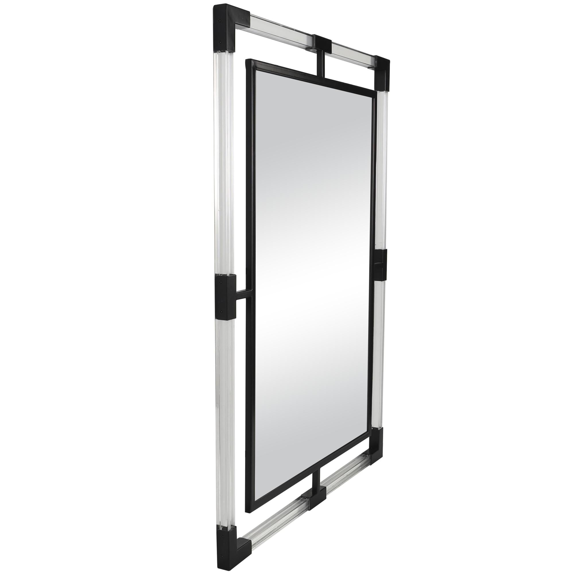•The room wall mirror highlights an iron and acrylic frame with a glass mirror panel and MDF backing