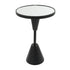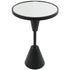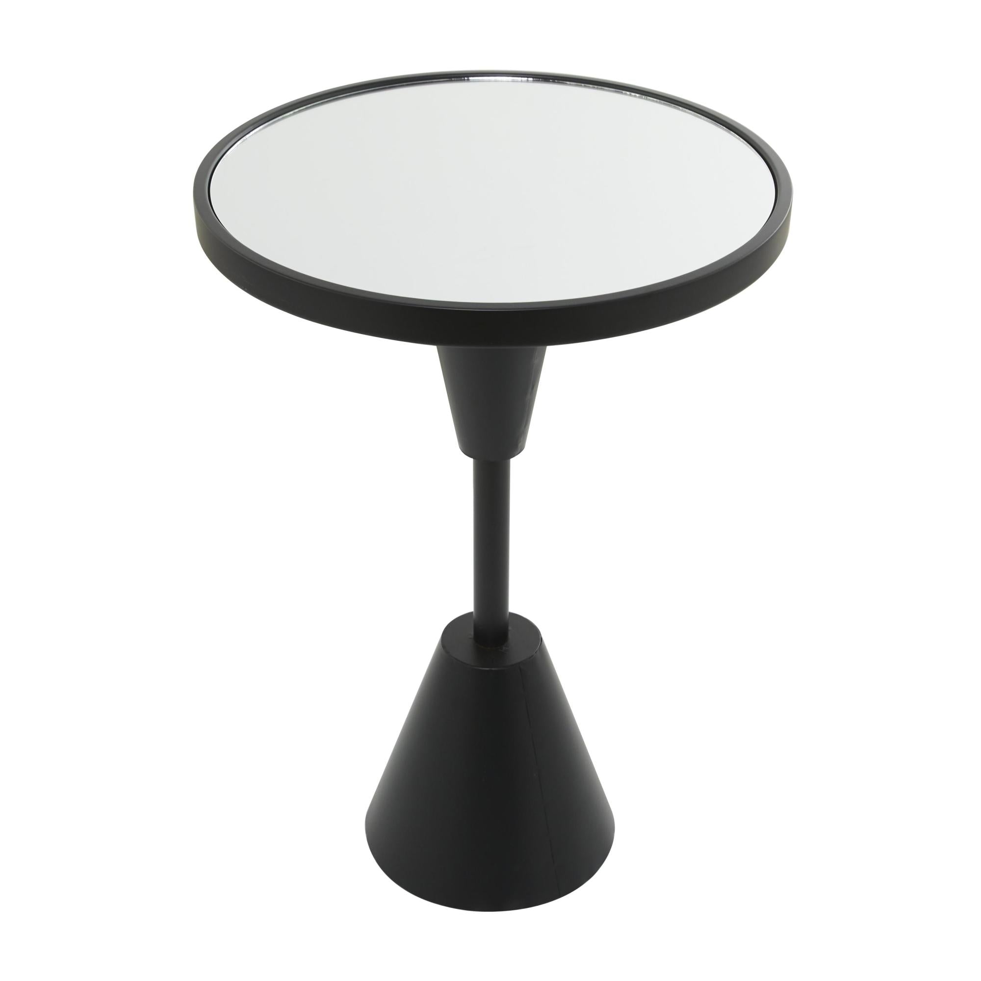 •The matte living room table features an inverted cone structure supporting a small round mirror top, making it an eye-catching addition to any space
