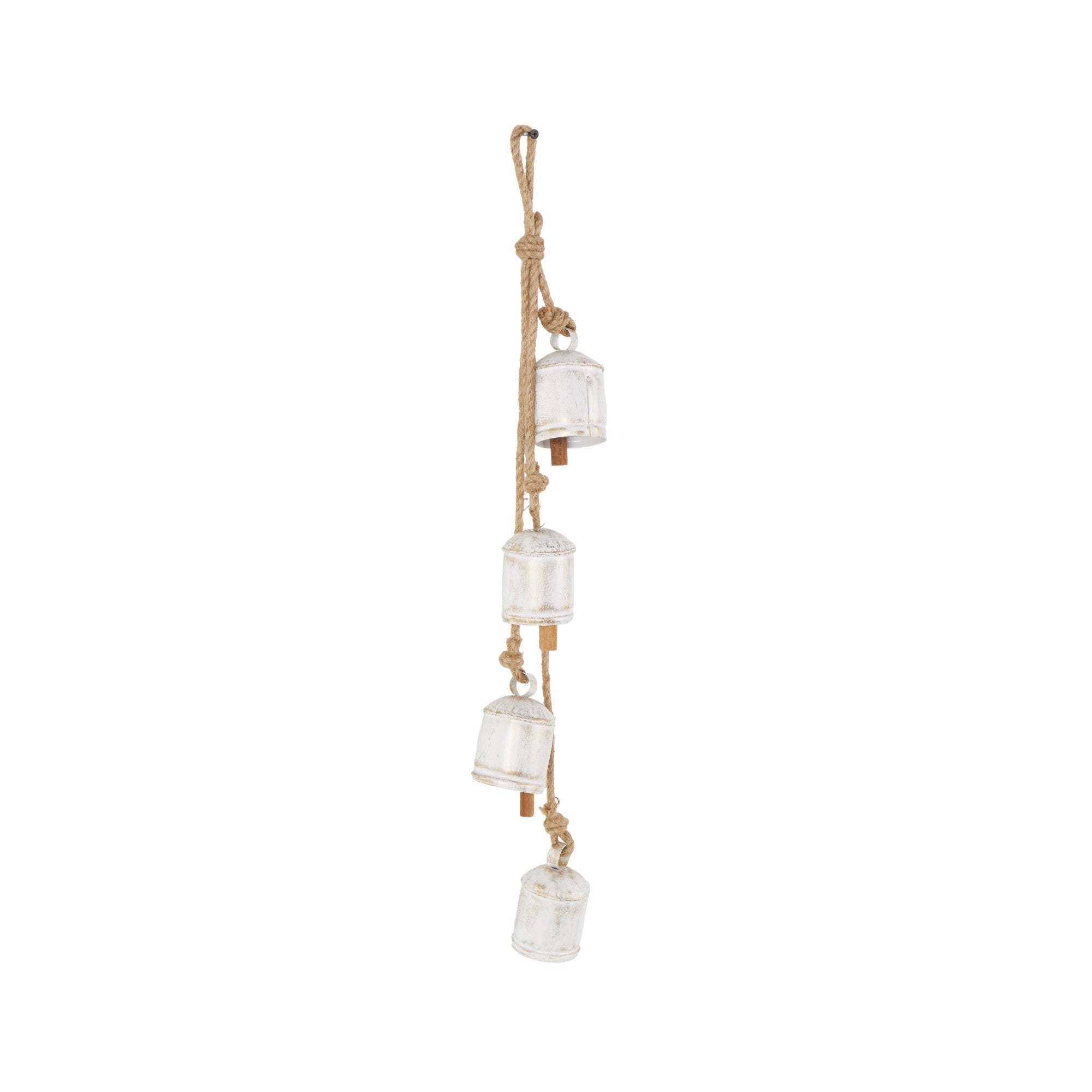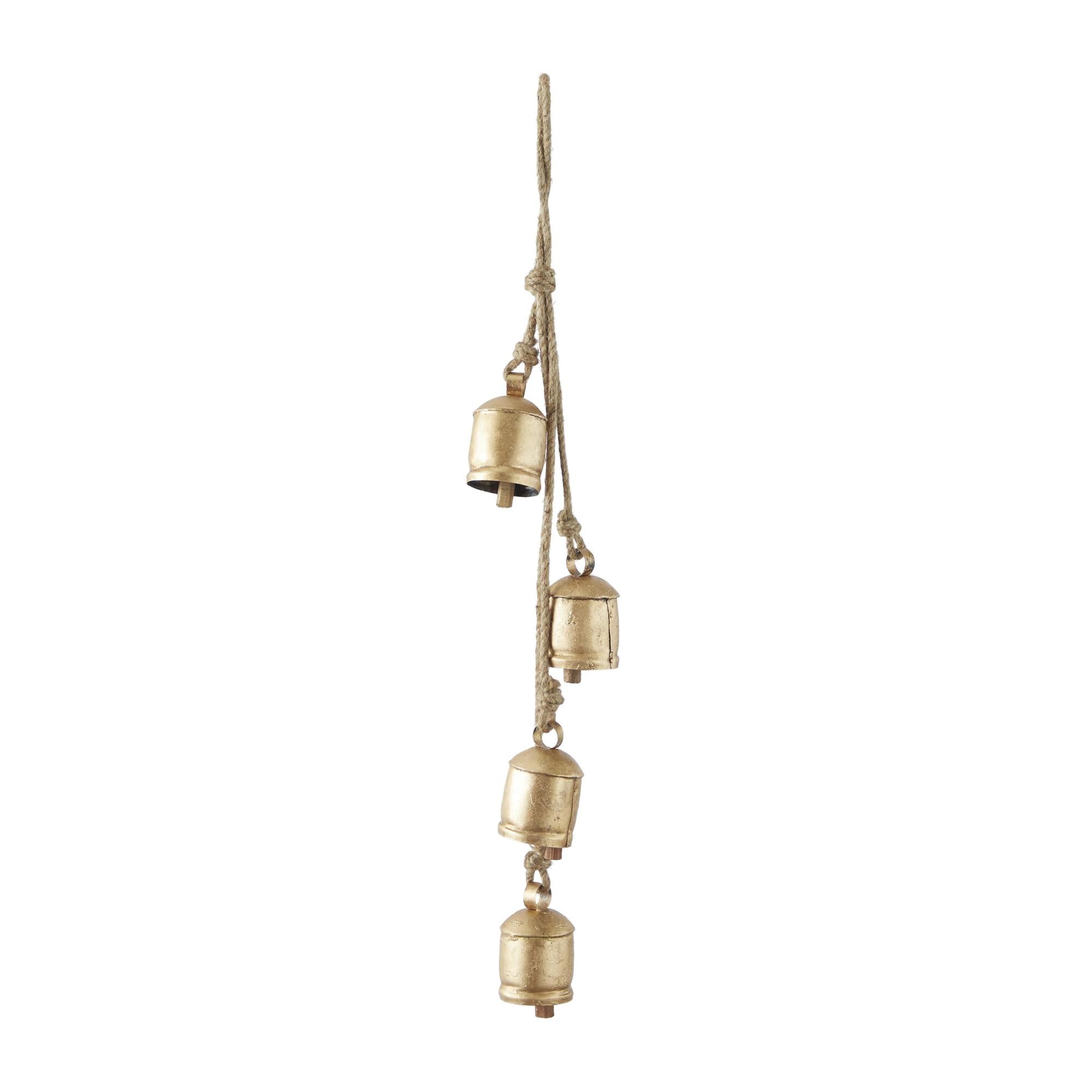 Create a sense of balance and depth in the most unique way by hanging these bells in empty spaces needing some extra love. Bell decor is stunning year round, but provides the added benefit of transitioning to holiday decor when the season is near. Add charming appeal to your home by hanging this meditation bell in a doorway or hallway corner, or kitchen for added visual flair. This item ships in 1 carton. There are 4 bells and each bells is 3"L x 3"W x 4"H. Metal decorative cow bells makes a great gift for any occasion. Can be hung vertically using the jute rope; nails and screws not included. Suitable for indoor use only. This item ships fully assembled in one piece. Made in India. This is a single meditation bell set. Bohemian style.