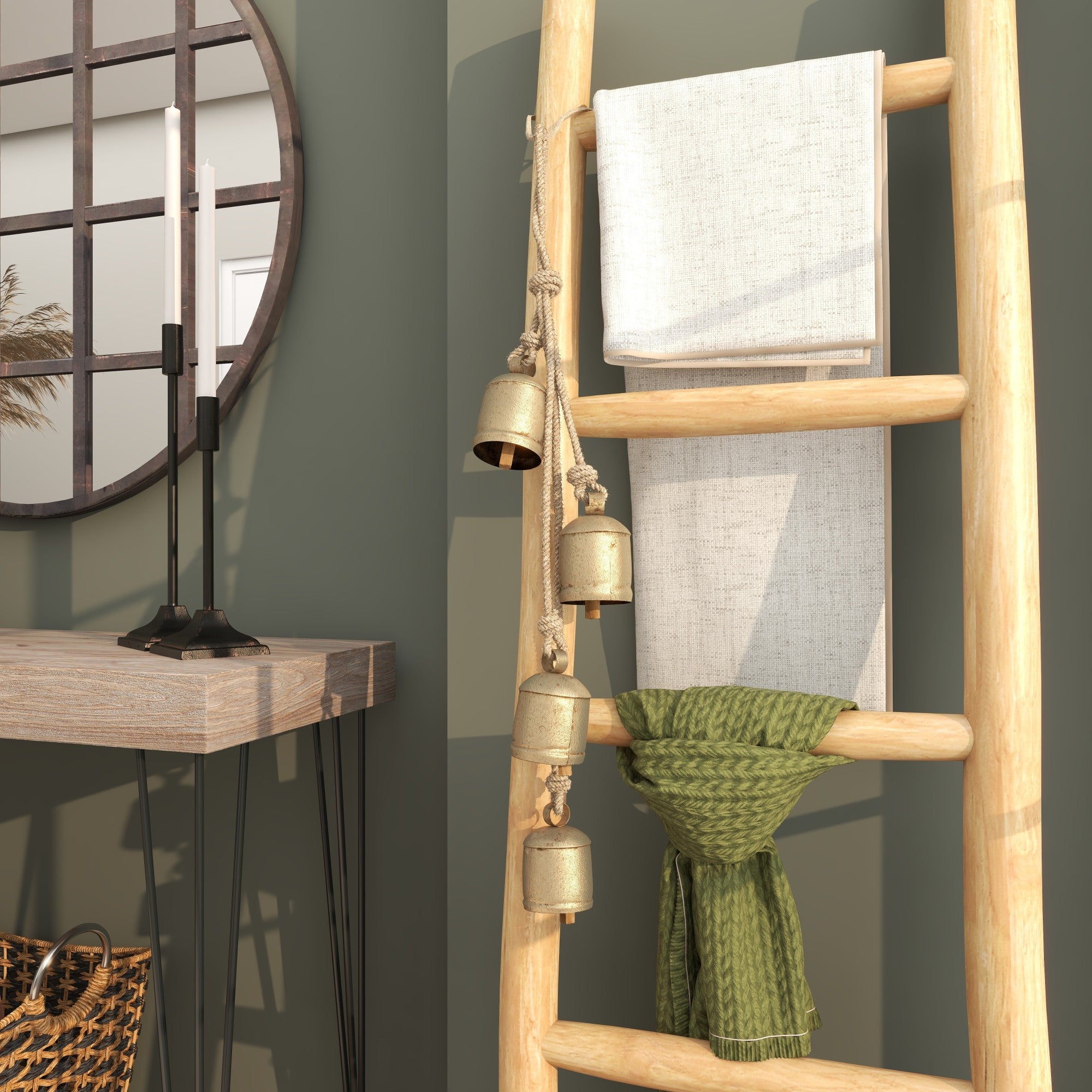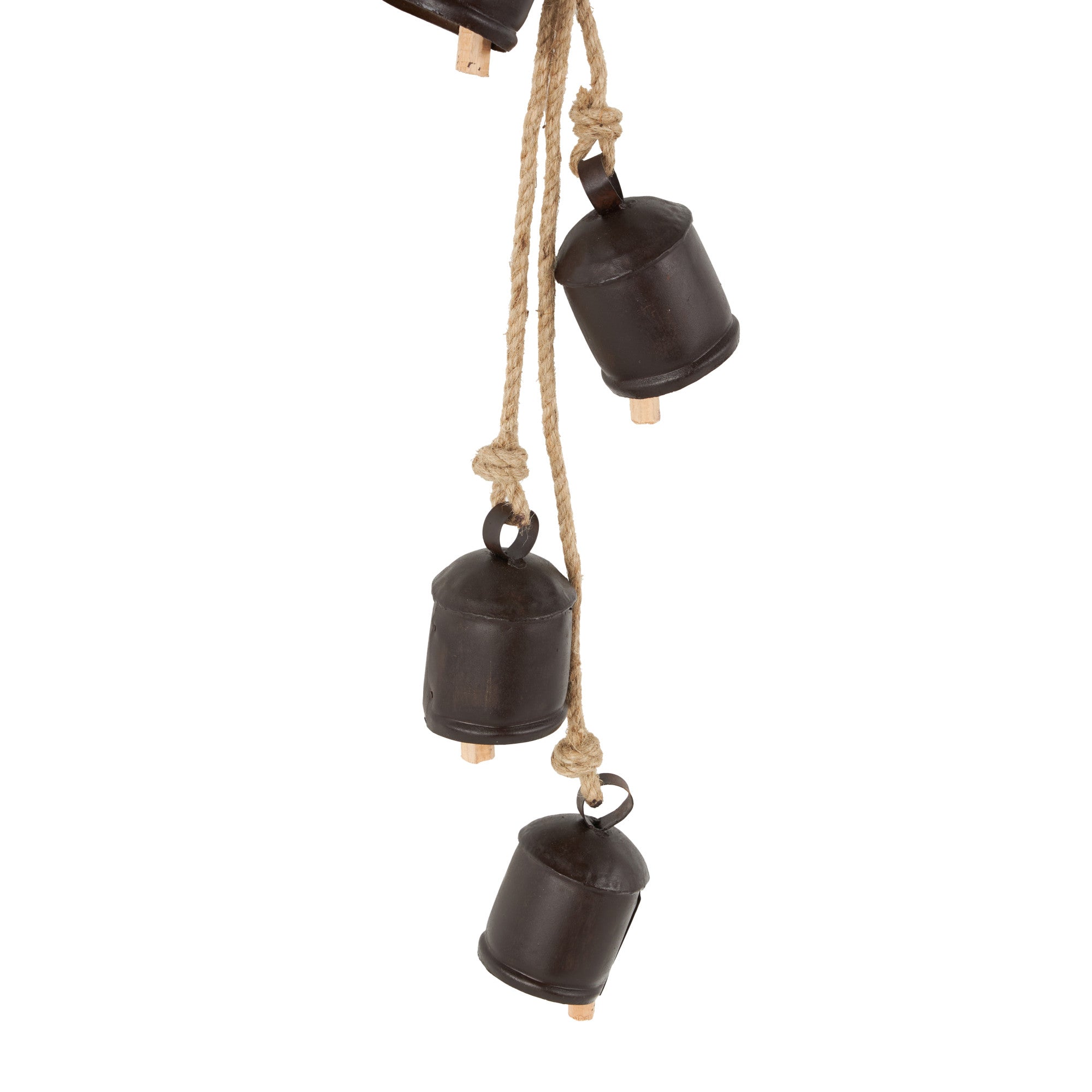 Metal Tibetan Inspired Indoor Outdoor Decorative Cow Bells with 4 Bells on Jute Hanging Rope