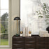 •The contemporary living room desk lamp is crafted from sturdy metal, featuring a sleek body and shade, all supported by a solid marble base