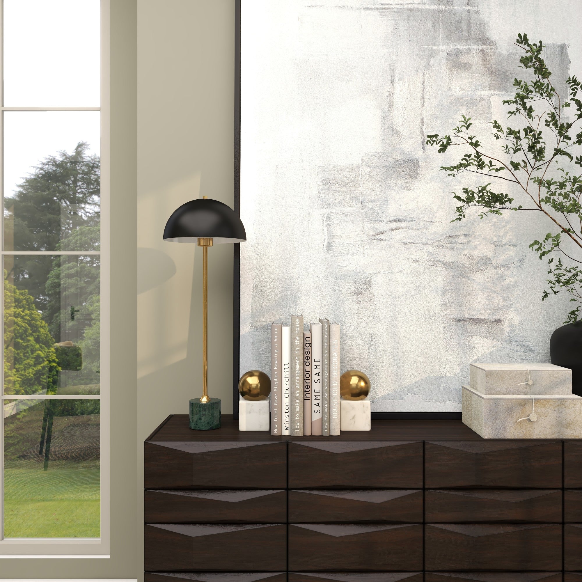 This eye catching lamp makes a playful addition to your surface space and beautifully illuminate its surrounding area. This accent lamp infuses charm and modern appeal into a living room area and bedroom. Designed with felt or rubber stoppers at the base that prevent scratching furniture and table tops, as well as sliding around. Requires 1 60W Type A E26/Medium (Standard) bulb. This item ships in 1 carton. Comes with a 62" cord length. Suitable for indoor use only. This item ships fully assembled in one piece. Desk lamp comes with a dome shaped shade that measures 10 x 10 x 6 inches. Includes a rotary switch. Marble is a product of nature and no two pieces are exactly alike. It is prone to variations in color and/or patterns in the material that add to the beauty and charm of the piece.. This is a single accent lamp. Contemporary style.