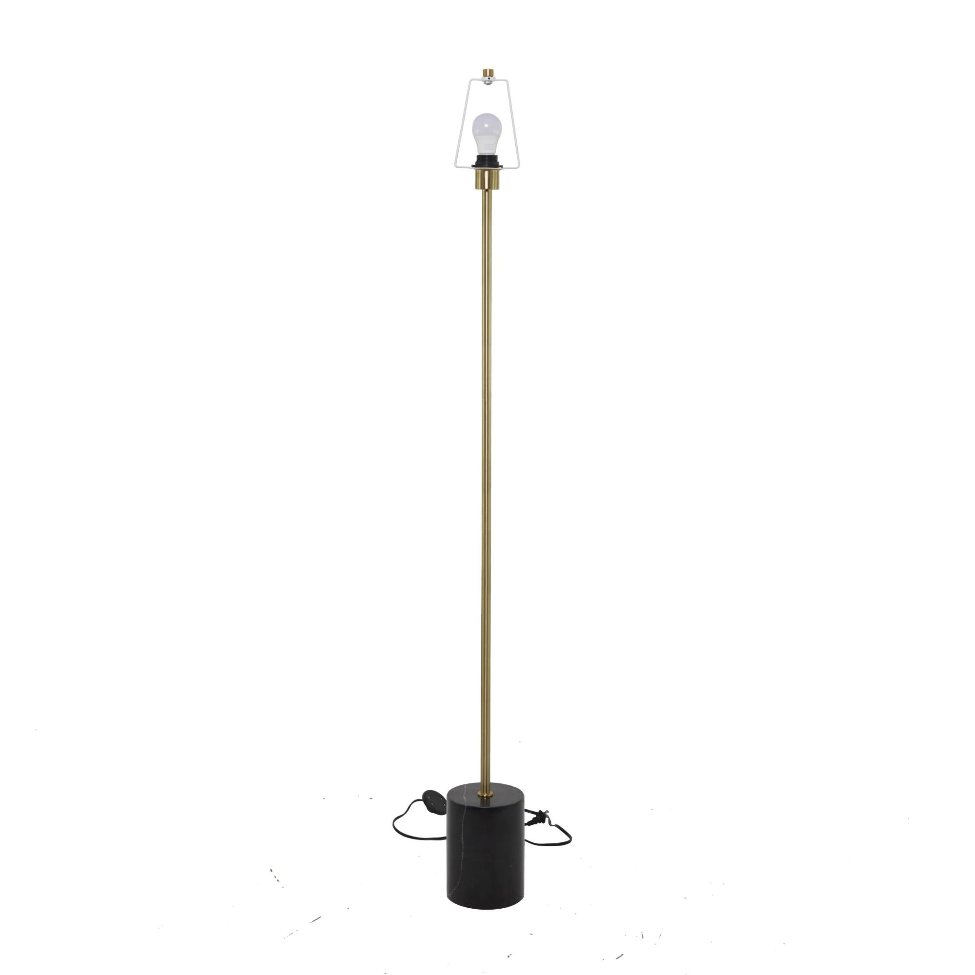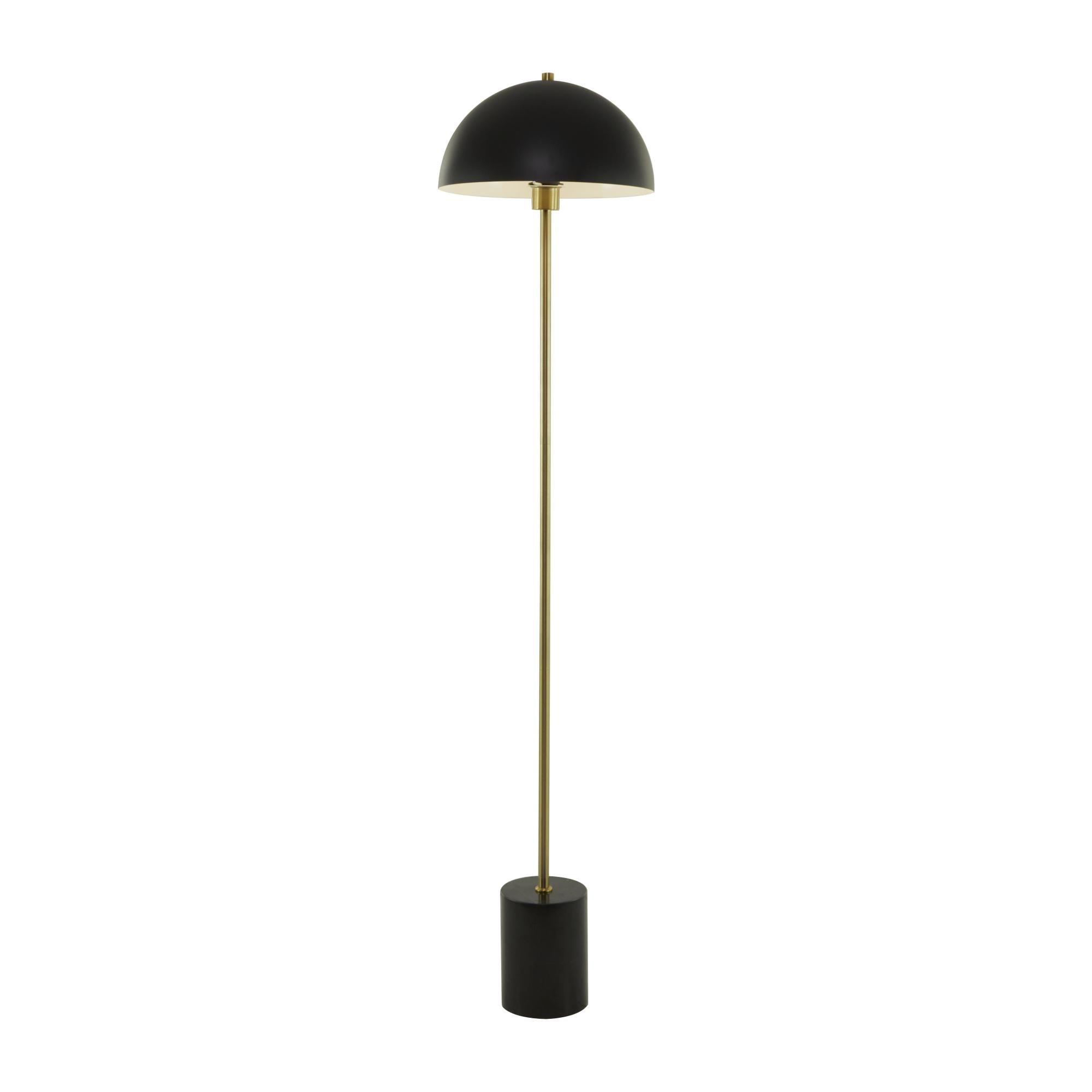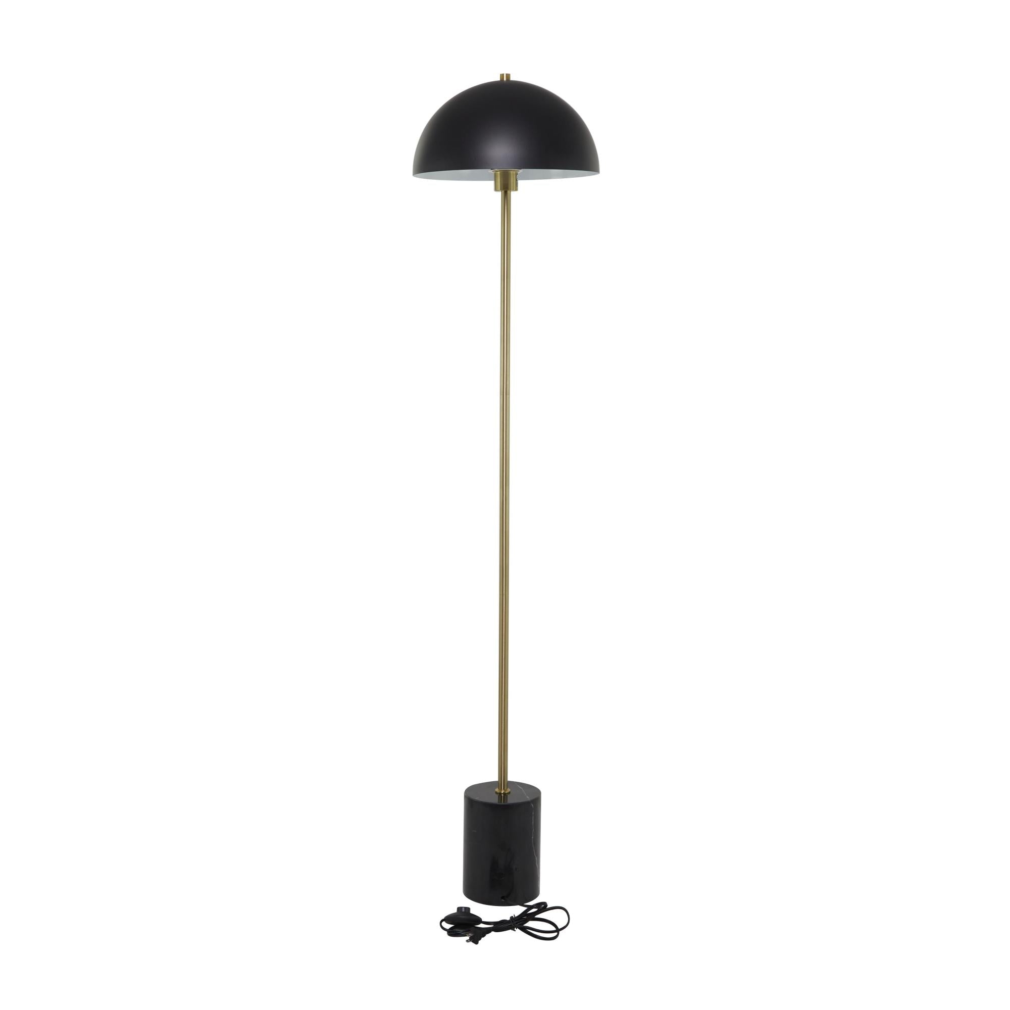 Add height and depth into your open floor space with this expertly designed floor lamp. Brighten up any room to create a warming atmosphere for you and your guests with this chic floor lamp. Ideal for adding ambient lighting to your living room spaces, this standing tall lamp brings a chic and classy vibe. Designed with felt or rubber stoppers at the base that prevent scratching furniture and table tops, as well as sliding around. Requires 1 60W Type A E26/Medium (Standard) bulb. This item ships in 1 carton. Comes with a 61" cord length. Suitable for indoor use only. This item ships fully assembled in one piece. Floor lamp comes with a dome shaped shade that measures 14 x 14 x 7 inches. Includes a foot step switch. Marble is a product of nature and no two pieces are exactly alike. It is prone to variations in color and/or patterns in the material that add to the beauty and charm of the piece.. This is a single standing tall lamp. Contemporary style.
