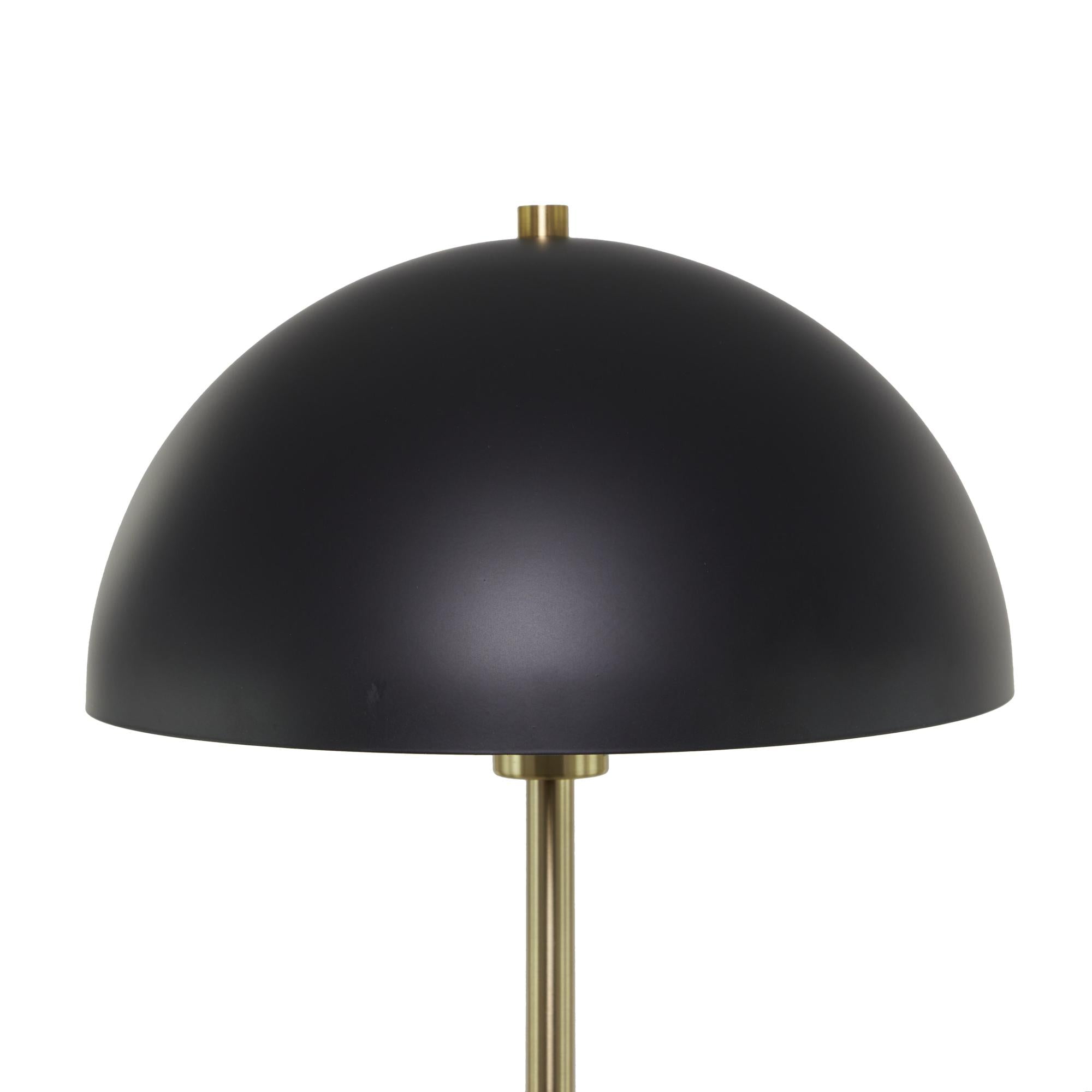 •The metal floor lamp features an elevated marble base stand supporting a dome-shaped shade