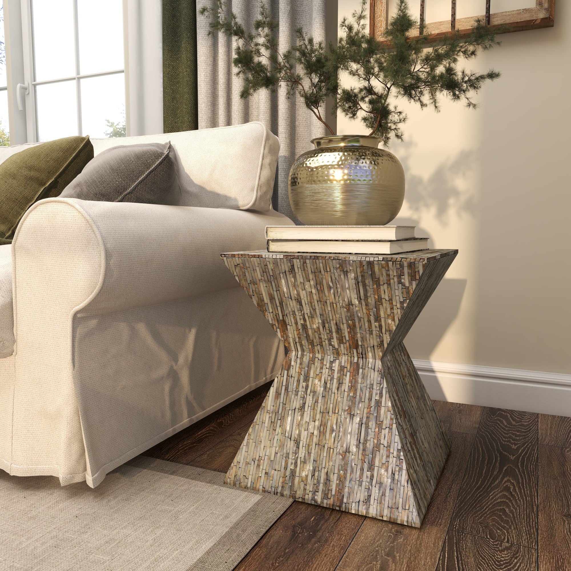 Mother of Pearl Shell Handmade Hourglass Shaped Side End Accent Table