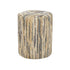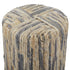 •This multi-colored side end accent table is constructed from a sturdy cylindrical cut of teak wood, overlaid with intricately woven banana fibers in varying neutral shades