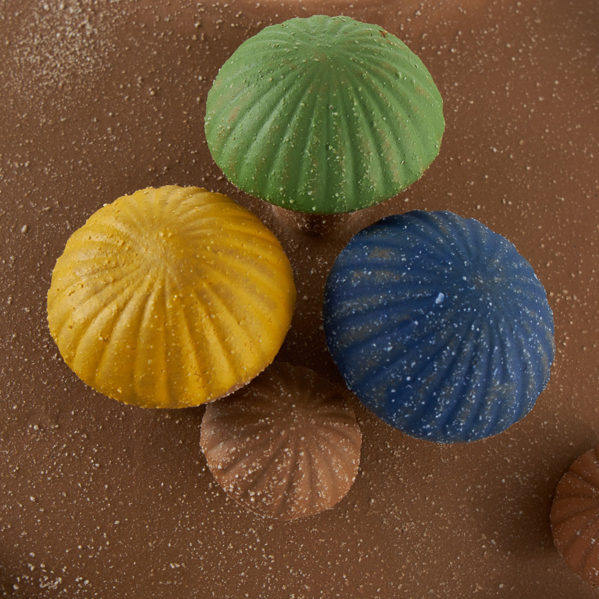 Mushroom Brown Ceramic Round Wide Decorative Vase with Multicolor Accents and White Speckles