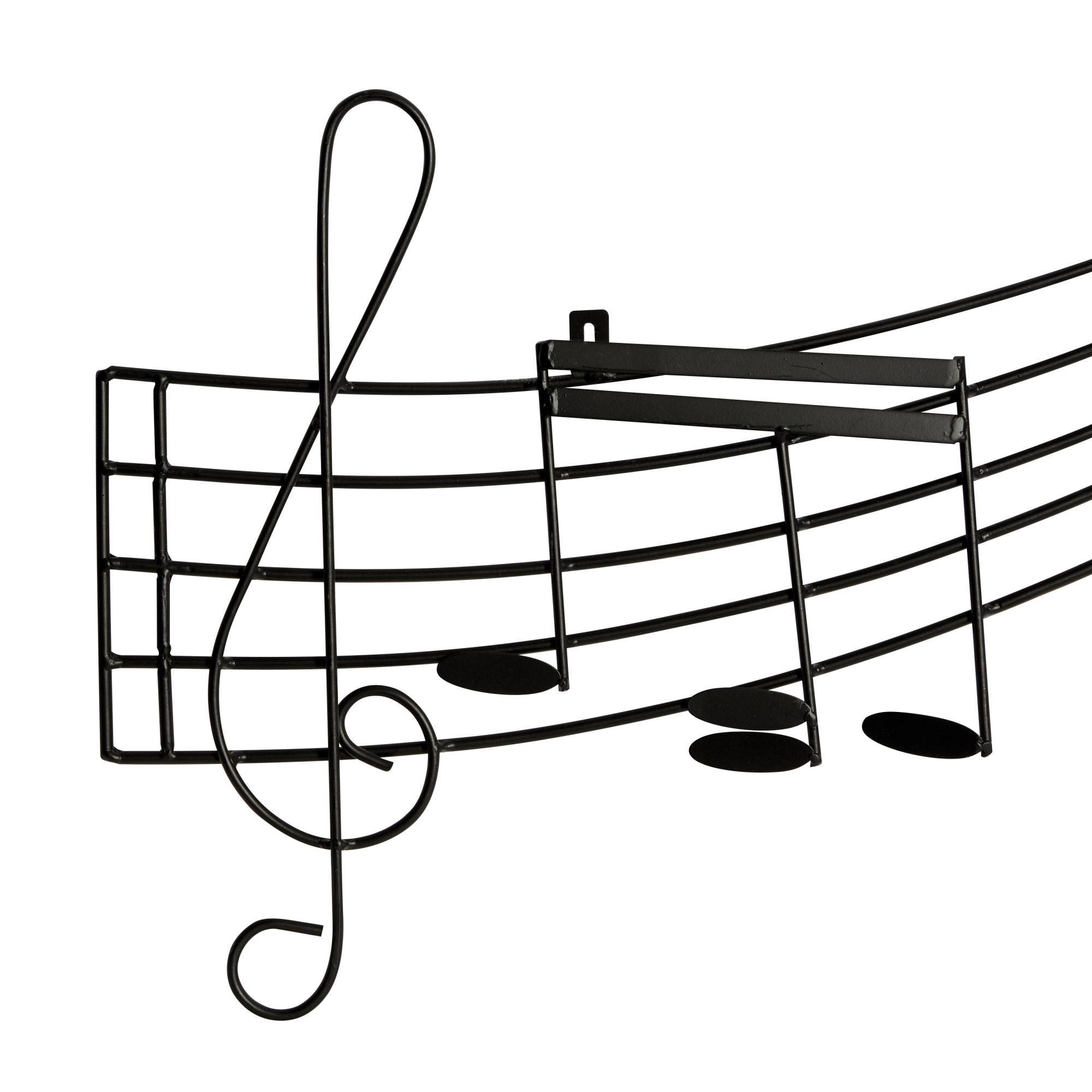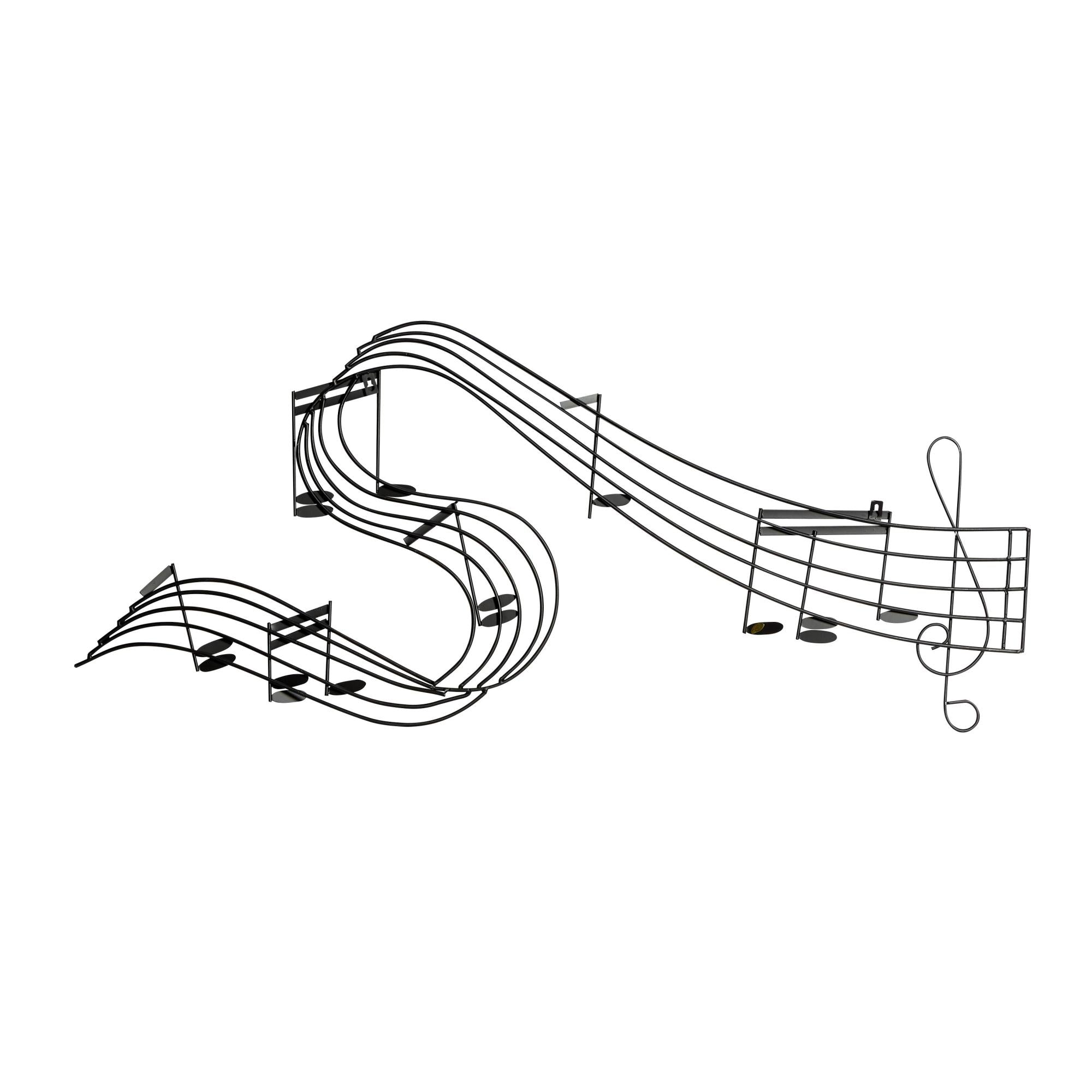 •Iron wall decor features a music staff complete with a G-clef and musical notes, following a weaving motion as if in tune to an unheard melody