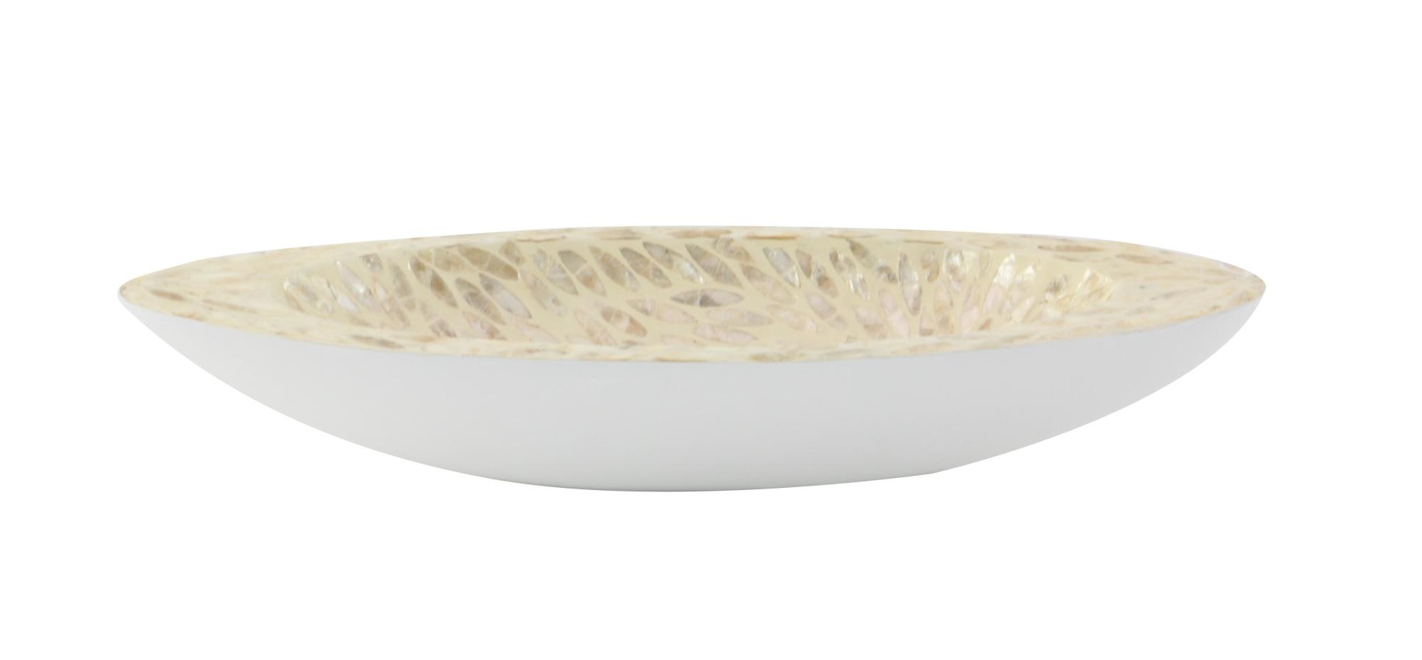 •The coastal multipurpose tray is molded from resin to form its bowl shape, inlaid with mother of pearl patterned shells to enhance its elegance
