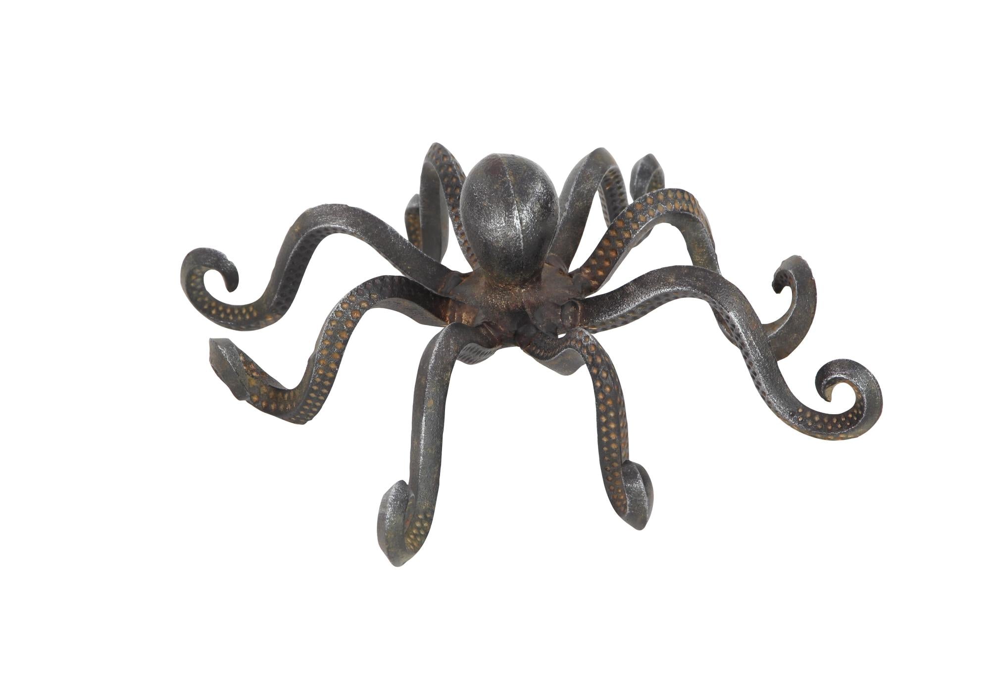•Iron sculpture features a standing octopus on its tentacles, bringing an ocean vibe to any home setting