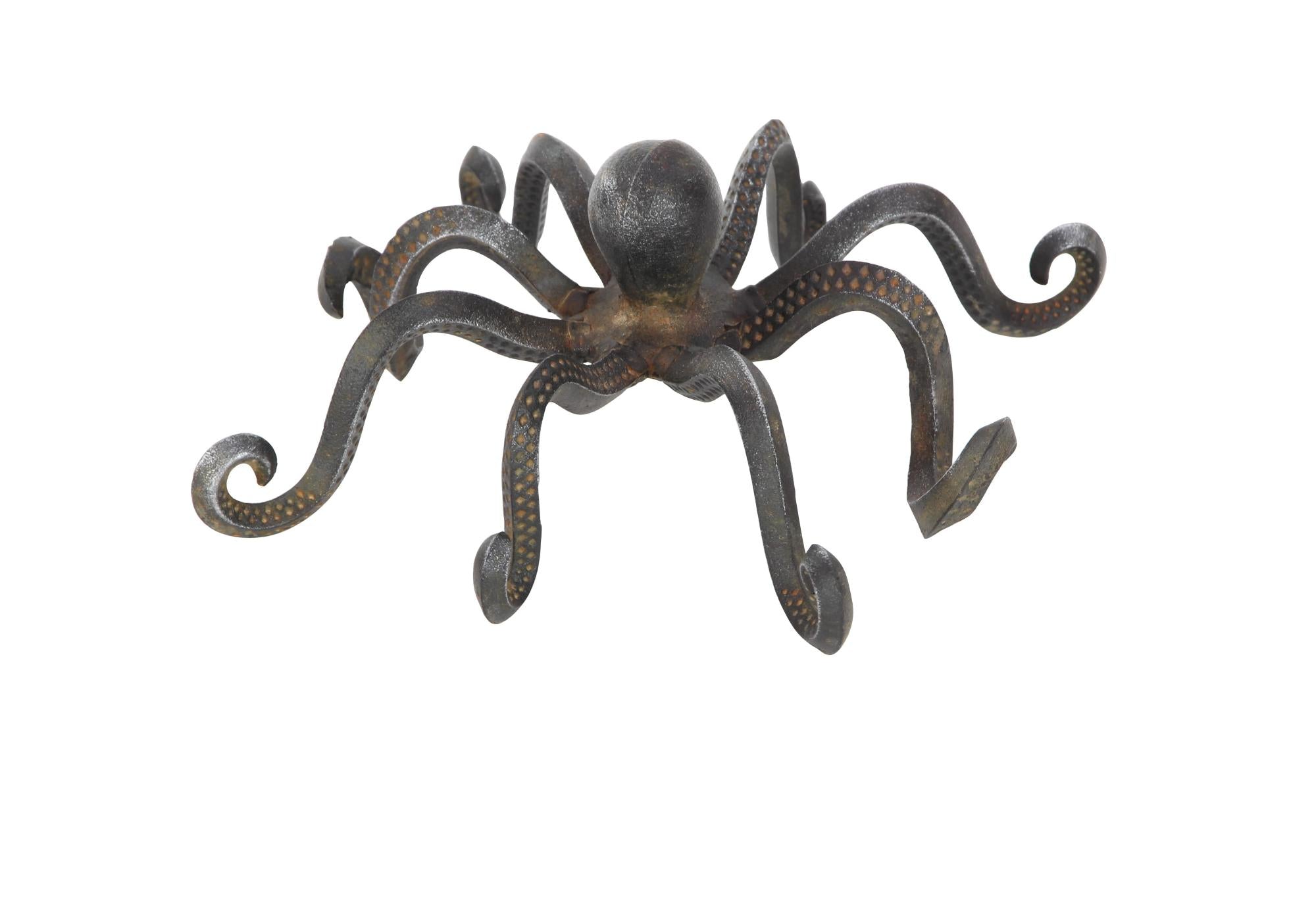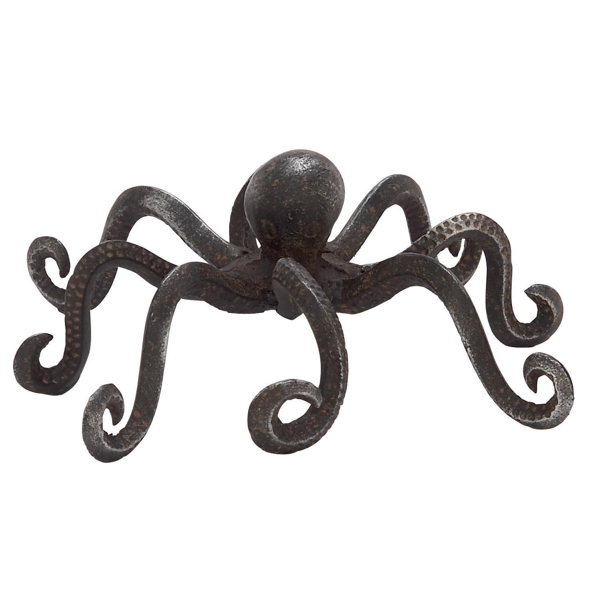 Adorn your surface space by incorporating sculpture into your decor to add depth and texture in your home. An artistic display to showcase your personality and enhance the look of any open table top space. Perfect for your coastal-inspired home, this octopus home decor statue makes a stunning centerpiece on tables or shelves in the living room. Designed with felt or rubber stoppers at the base that prevent scratching furniture and table tops, as well as sliding around. This item ships in 1 carton. Please note that this item is for decorative use only. Iron sculpture makes a great gift for any occasion. Suitable for indoor use only. This item ships fully assembled in one piece. This is a single statue. Coastal style.