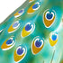 •This satin outdoor decorative sculpture captures the elegant form of a peacock in motion with oval patterns on the wings