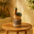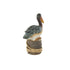 •Textured home decor figurine takes on the shape of a charming pelican sitting on a round block, bringing a unique marine aesthetic to any space it graces