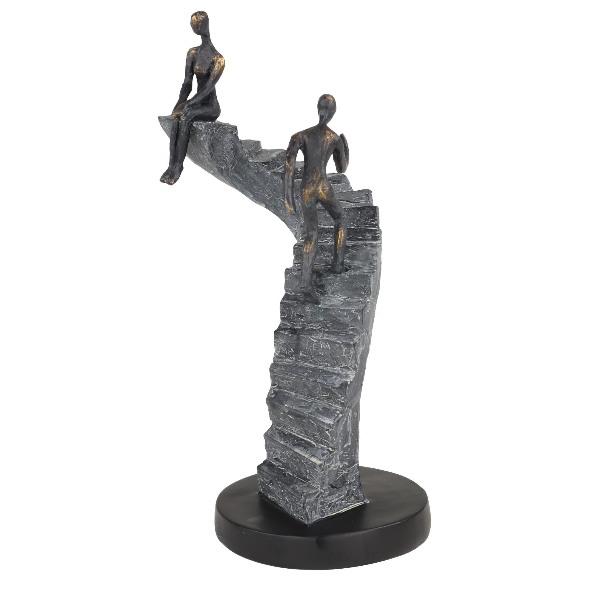 •This polystone sculpture features intricate stairs and people figures, creating a multi-dimensional piece that adds depth and interest to any setting