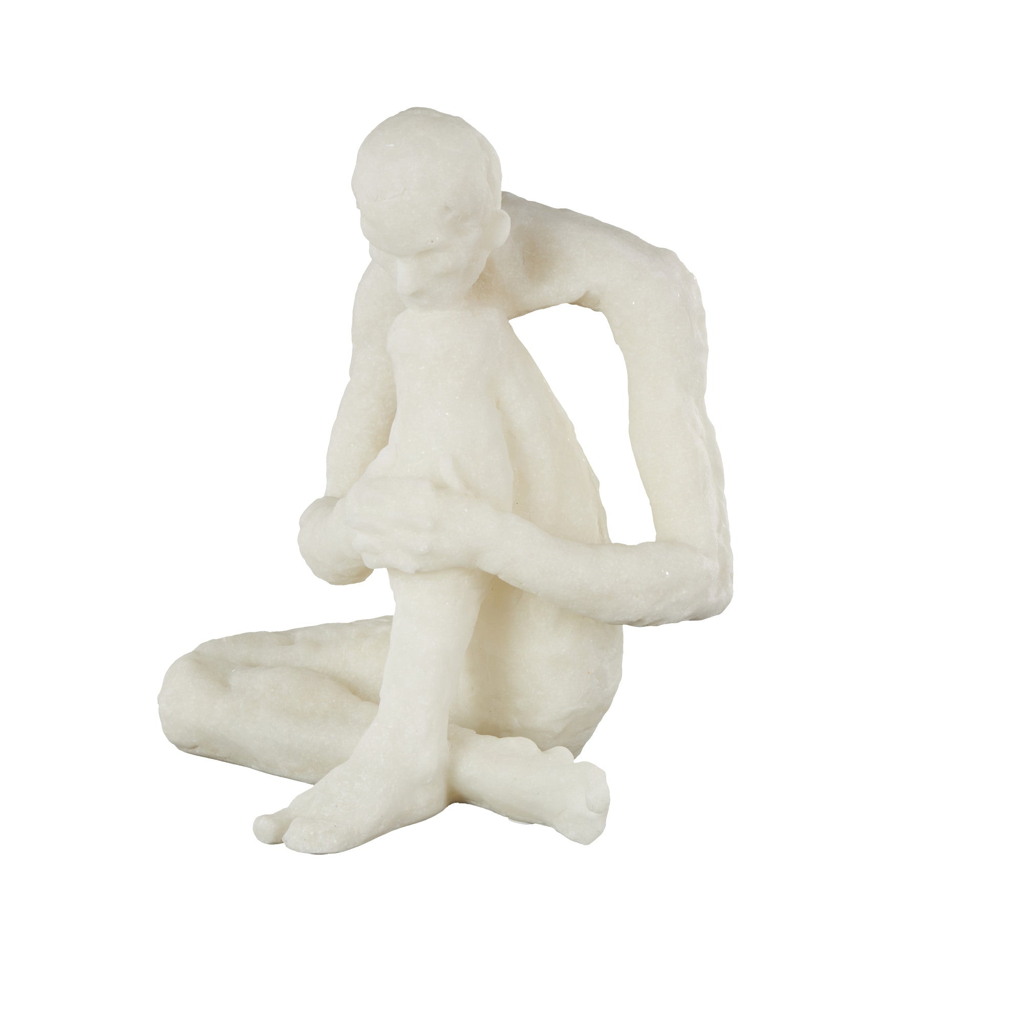 People White Polystone Thinking Decorative Sculpture with Shimmer