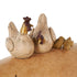 •Distressed home decor figurine showcases a charming pig figure adorned with intricately detailed roosters and chicks on top