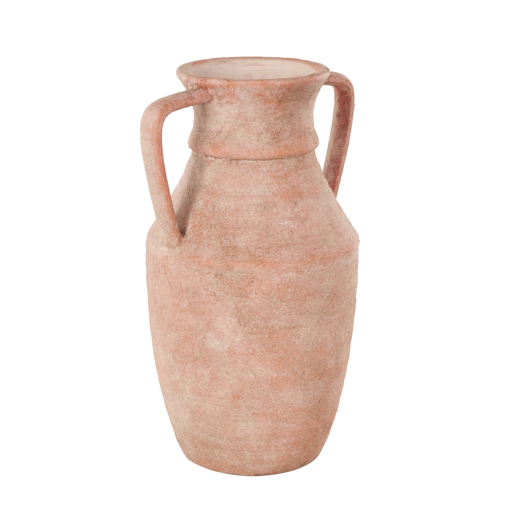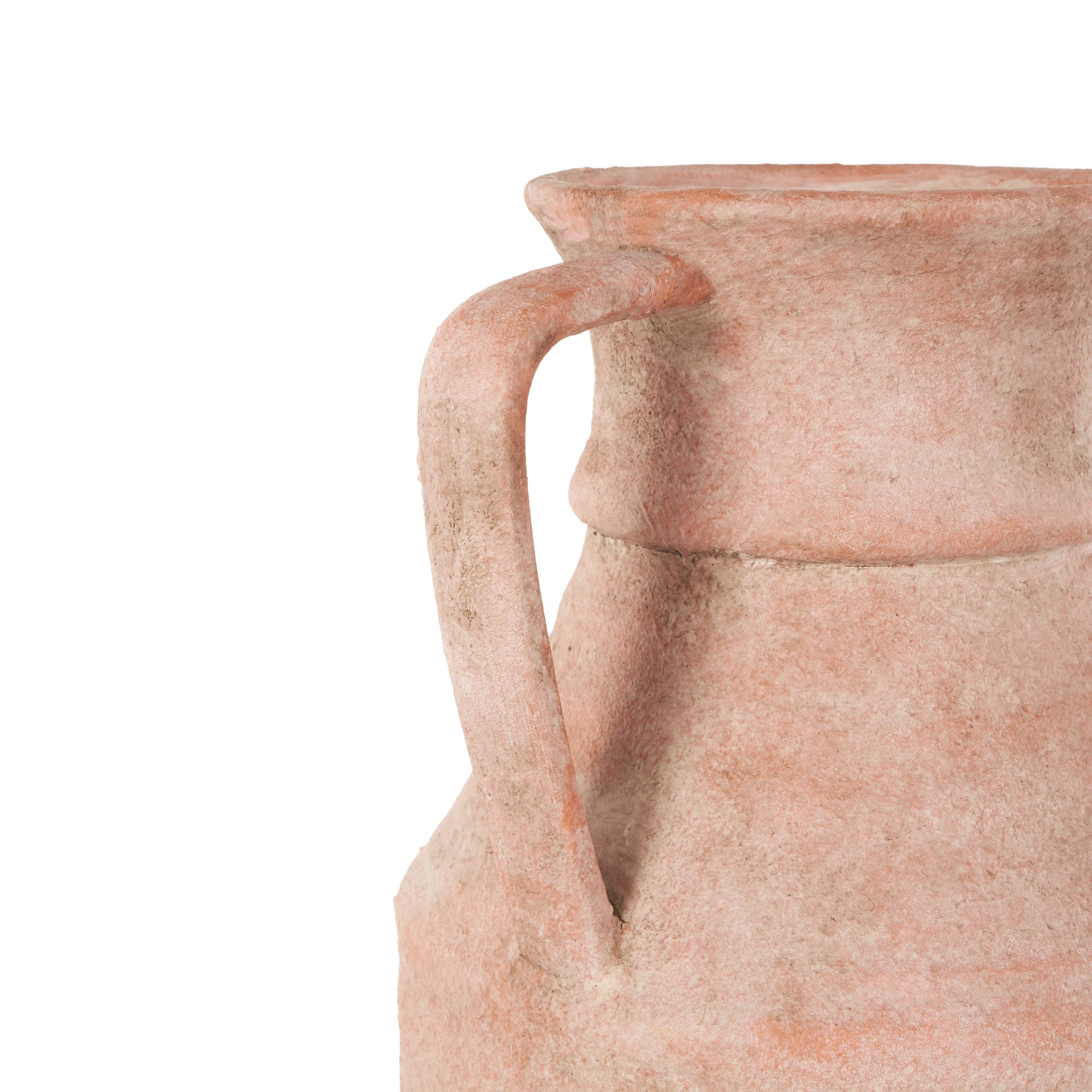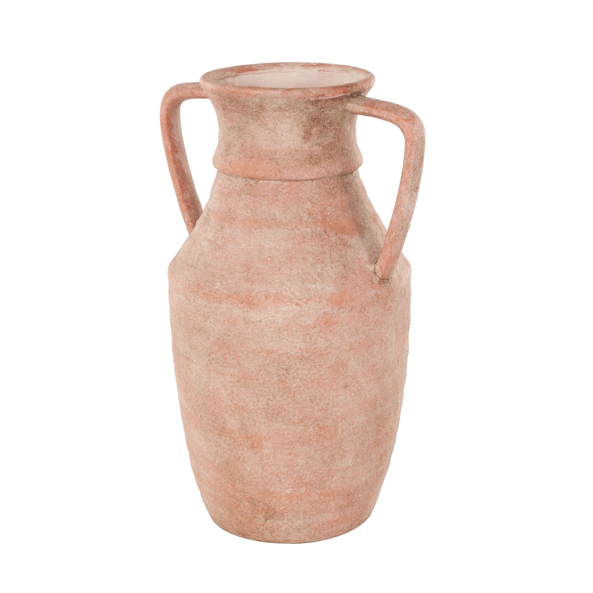 •The distressed vase for dried flowers boasts an amphora shape and handles with elegant curves