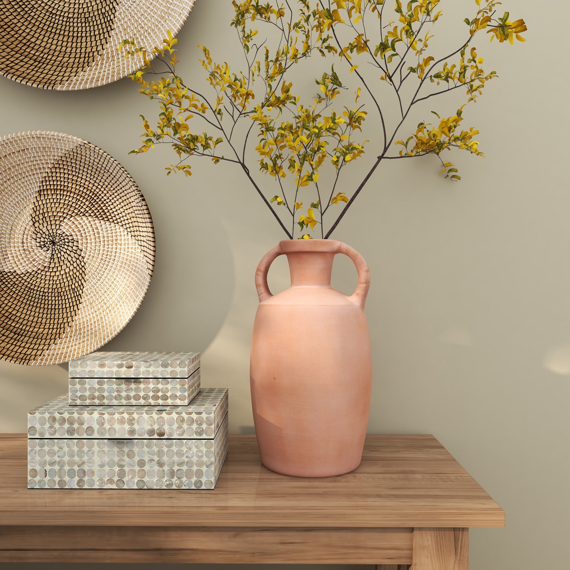 Pink Ceramic Terracotta Jug Decorative Vase with Handles