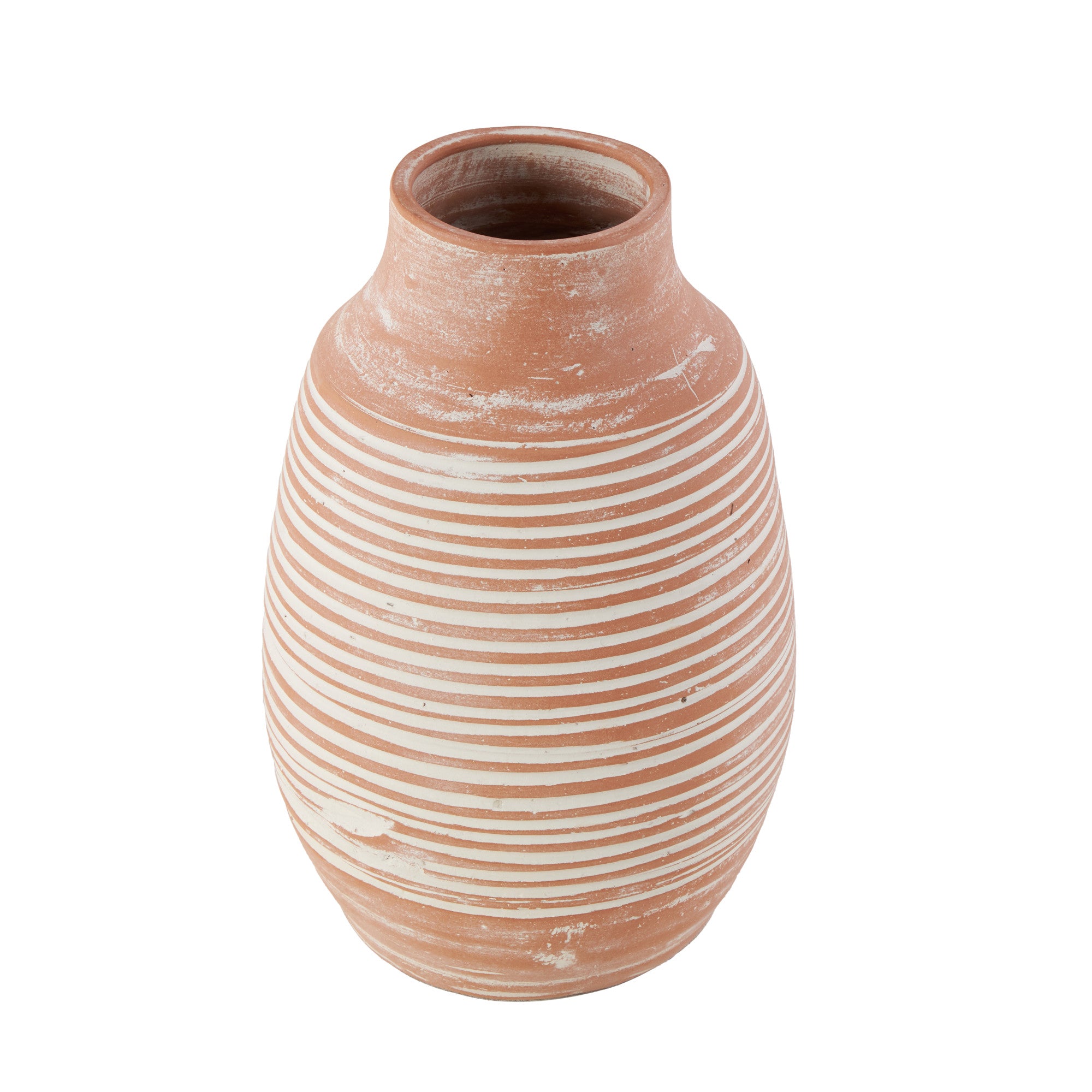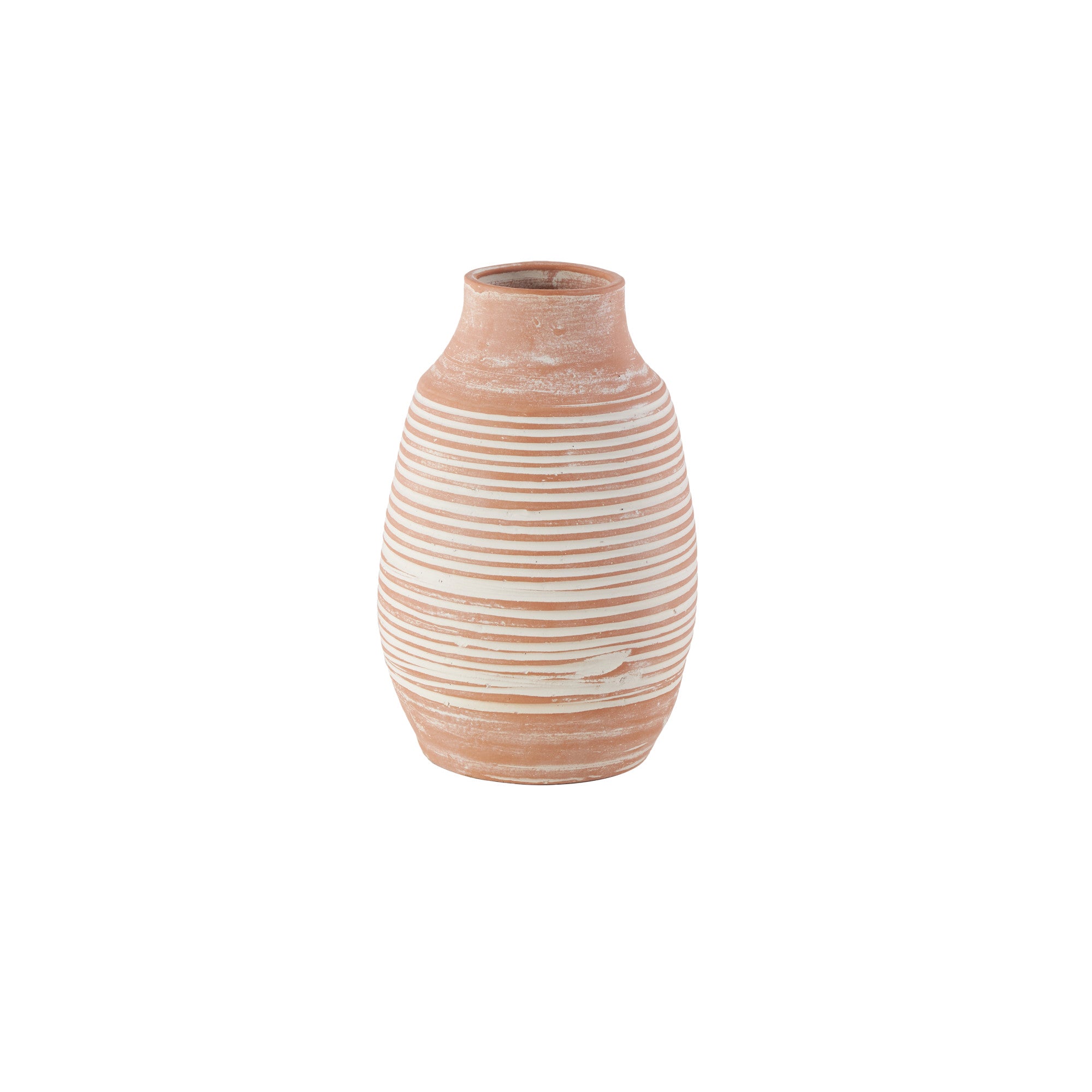 Accessorize your space effortlessly by displaying a beautiful floral arrangement or greenery with this decorative vase. Create a balanced surface space and added dimension with this beautifully crafted vase. Use the centerpiece vase to add an elegant touch to your living room or dining area. Designed with felt or rubber stoppers at the base that prevent scratching furniture and table tops, as well as sliding around. This item ships in 1 carton. Suitable for indoor use only. This item ships fully assembled in one piece. Made in India. This is a single vase. Traditional style. Vase has a 3.80 in mouth opening.