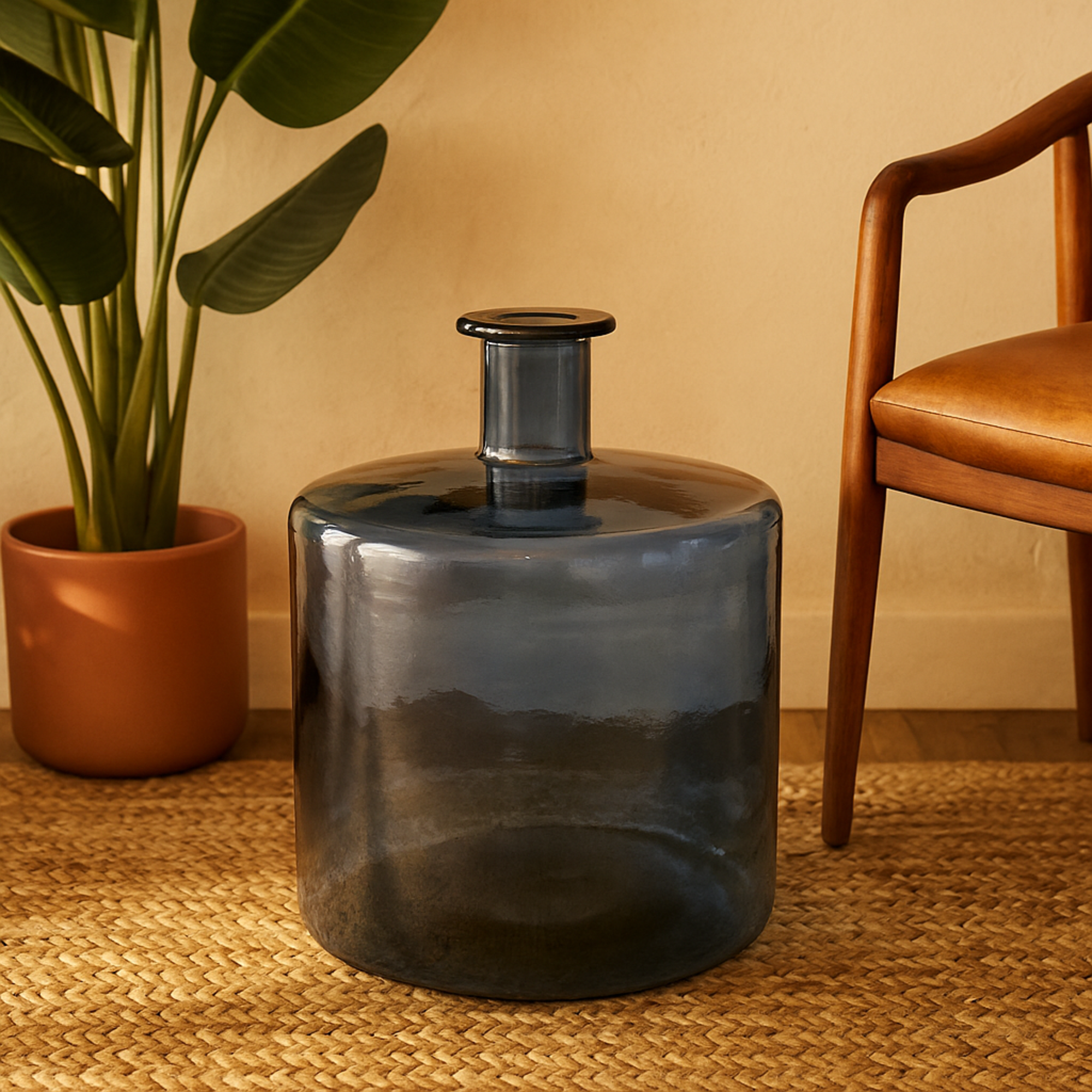 Recycled Glass Handmade Spanish Bottleneck Decorative Vase 14" x 14" x 18"