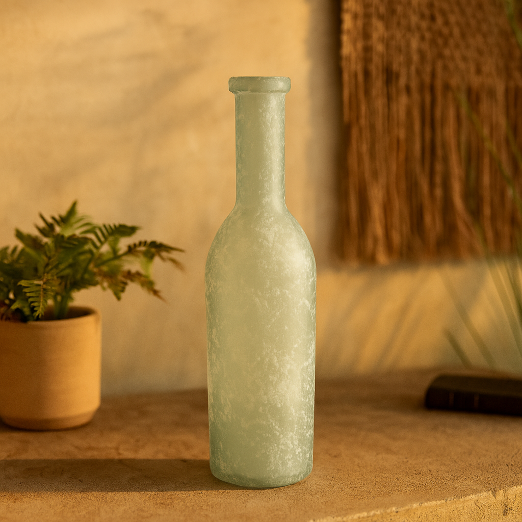 •This tinted vase for dried flowers showcases an all-time classic, transparent bottle glass design