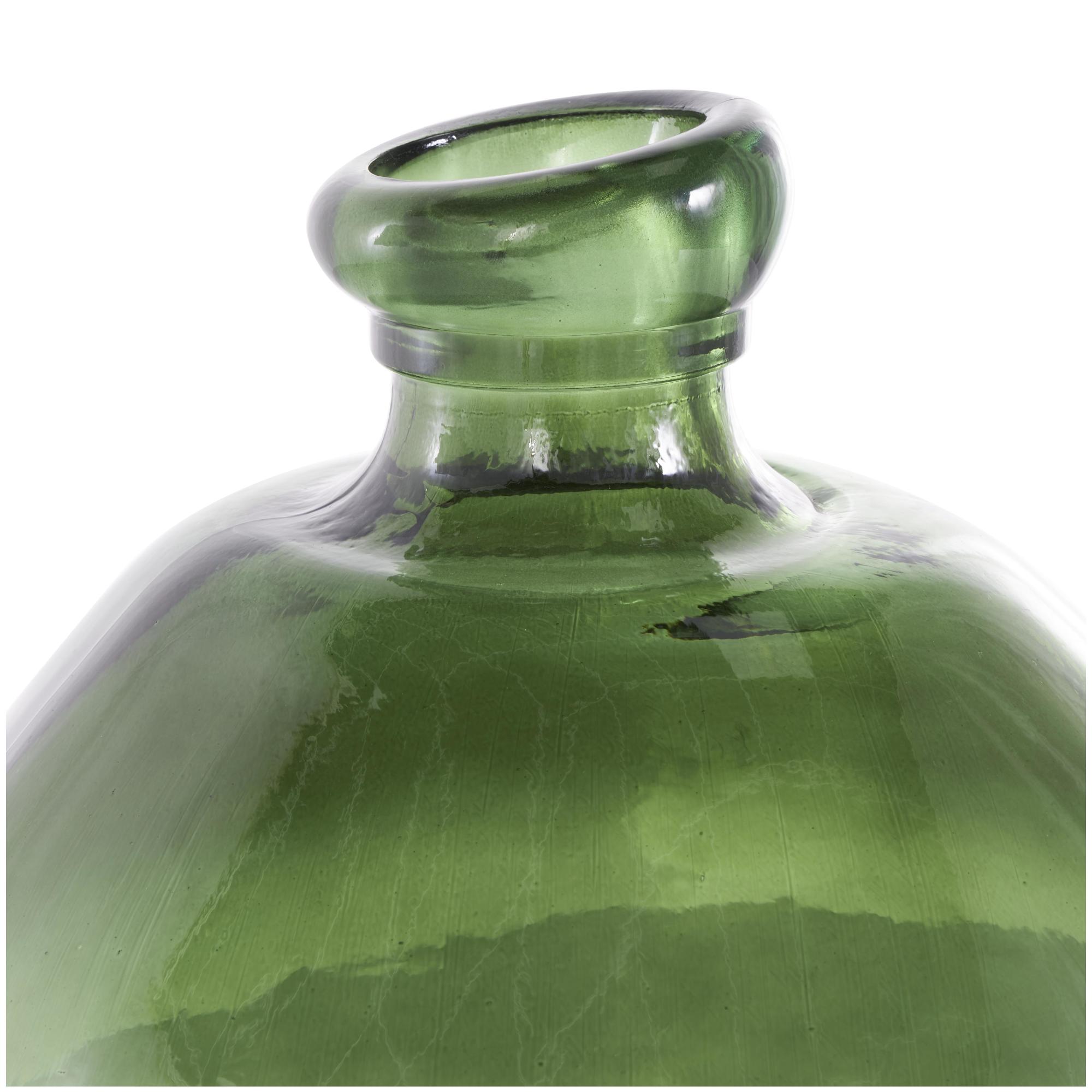This centerpiece vase can be used as a standalone centerpiece or filled with dried flowers for an added touch of nature in your living room or bedroom. This item ships in 1 carton. Recycled glass vase makes a great gift for any occasion. Due to the handmade nature of this item, no two will be alike, there will be slight differences in shape, size, and color. Suitable for indoor use only. This item ships fully assembled in one piece. Made in Spain. This is a single vase. Contemporary style. Vase has a 2 in mouth opening.