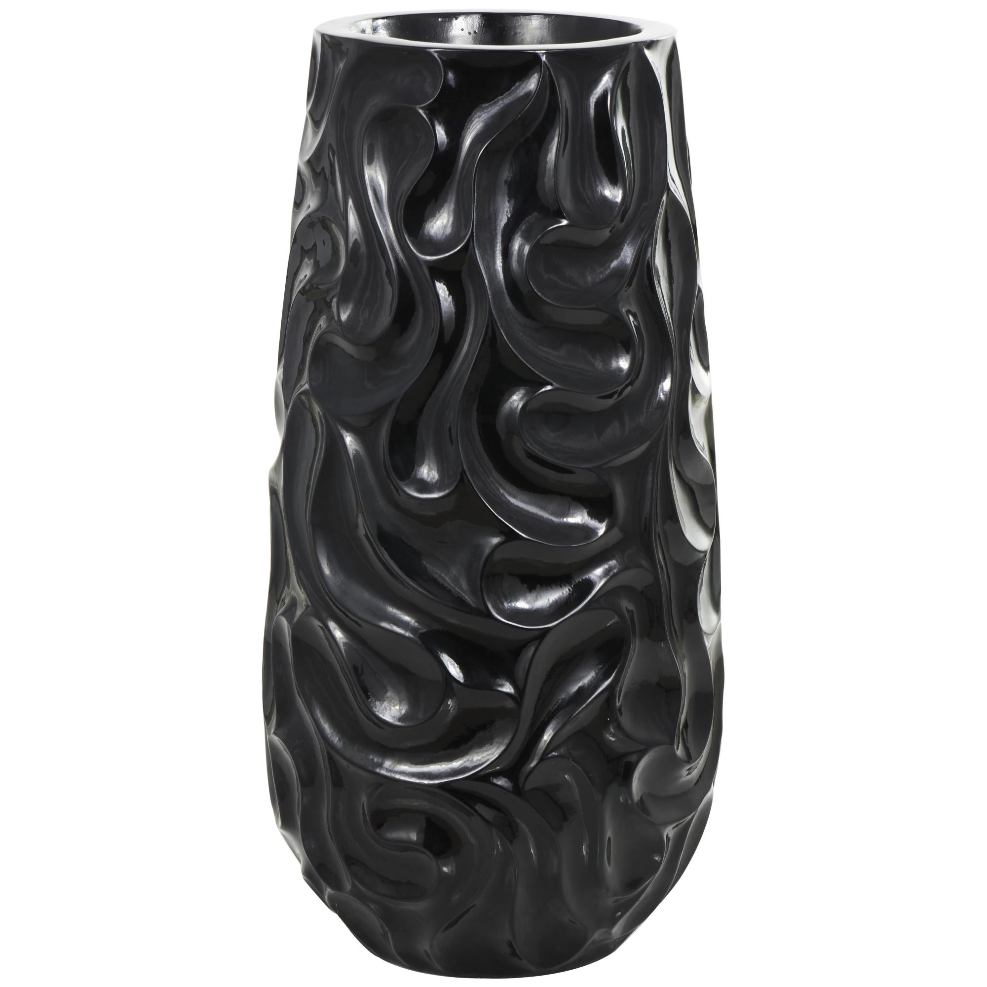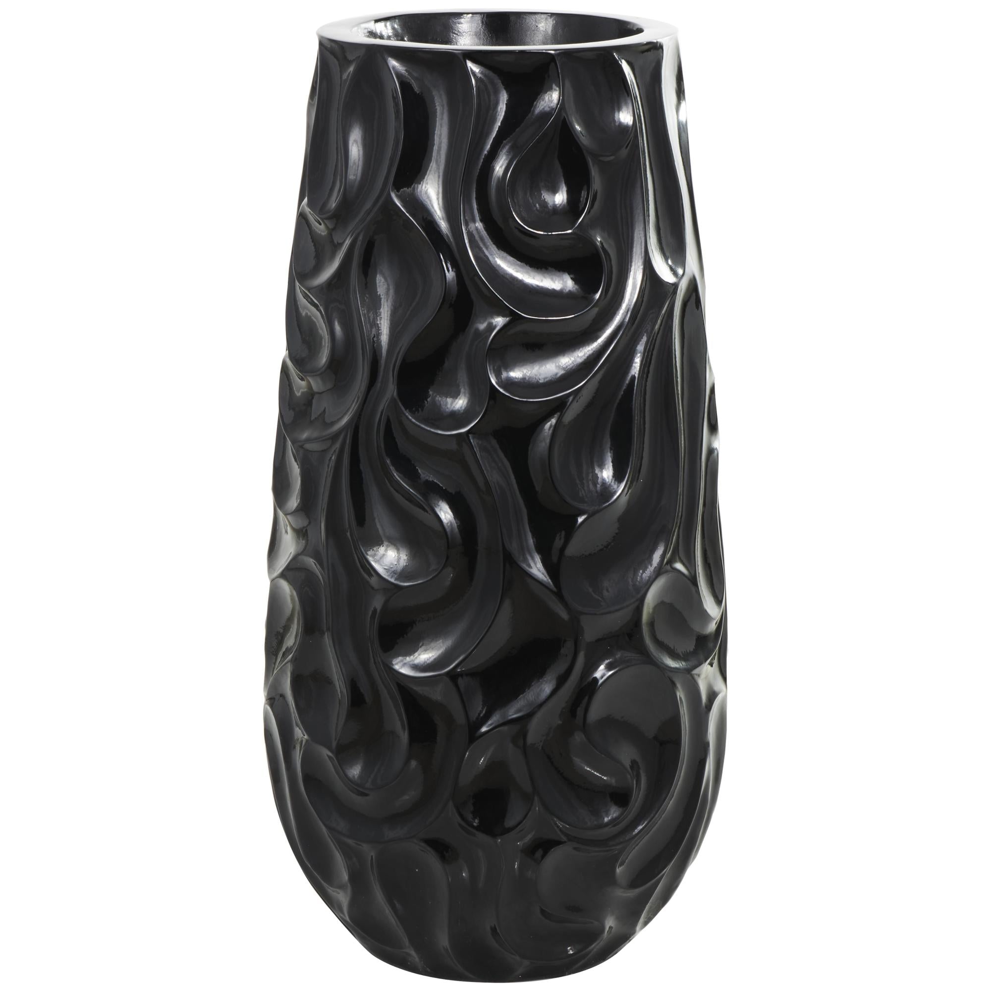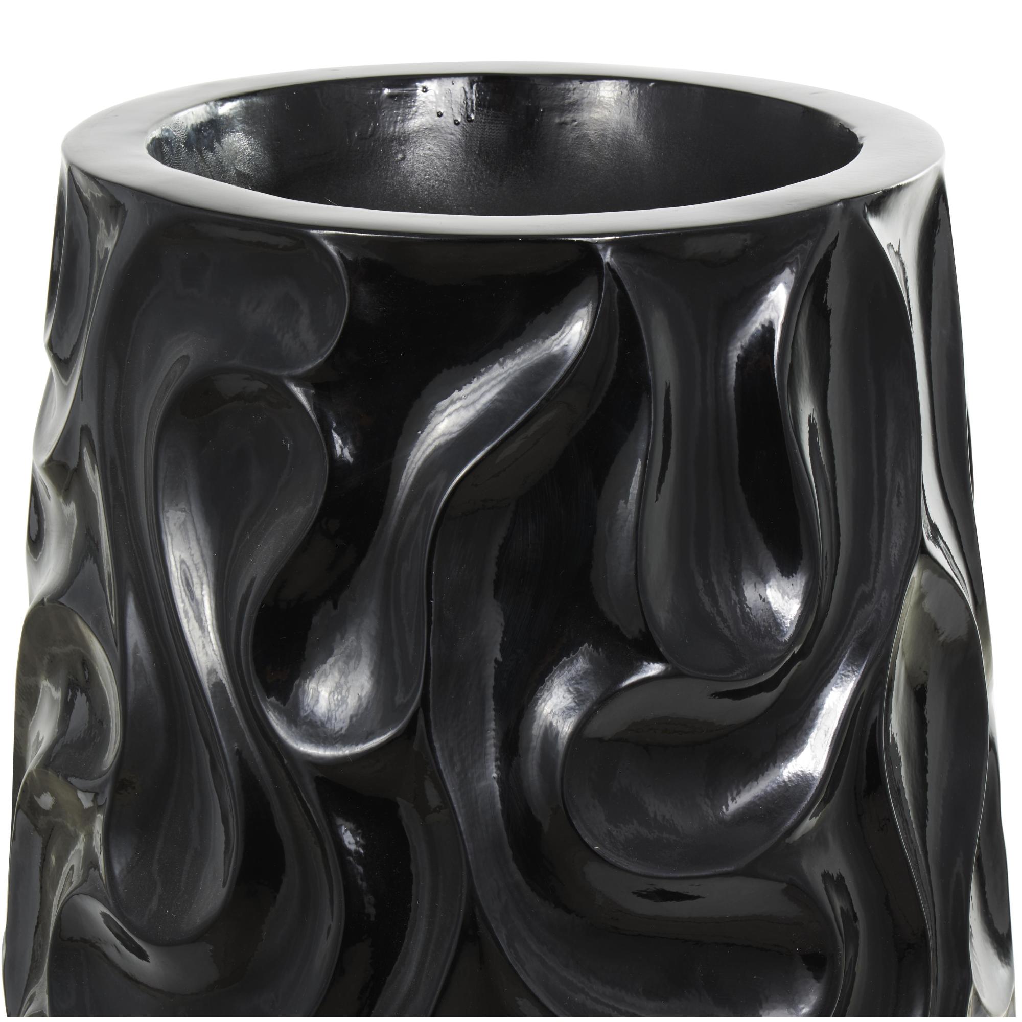 •Raised swirling patterns encase this wide opening vase, adding an artistic touch to the resin vase