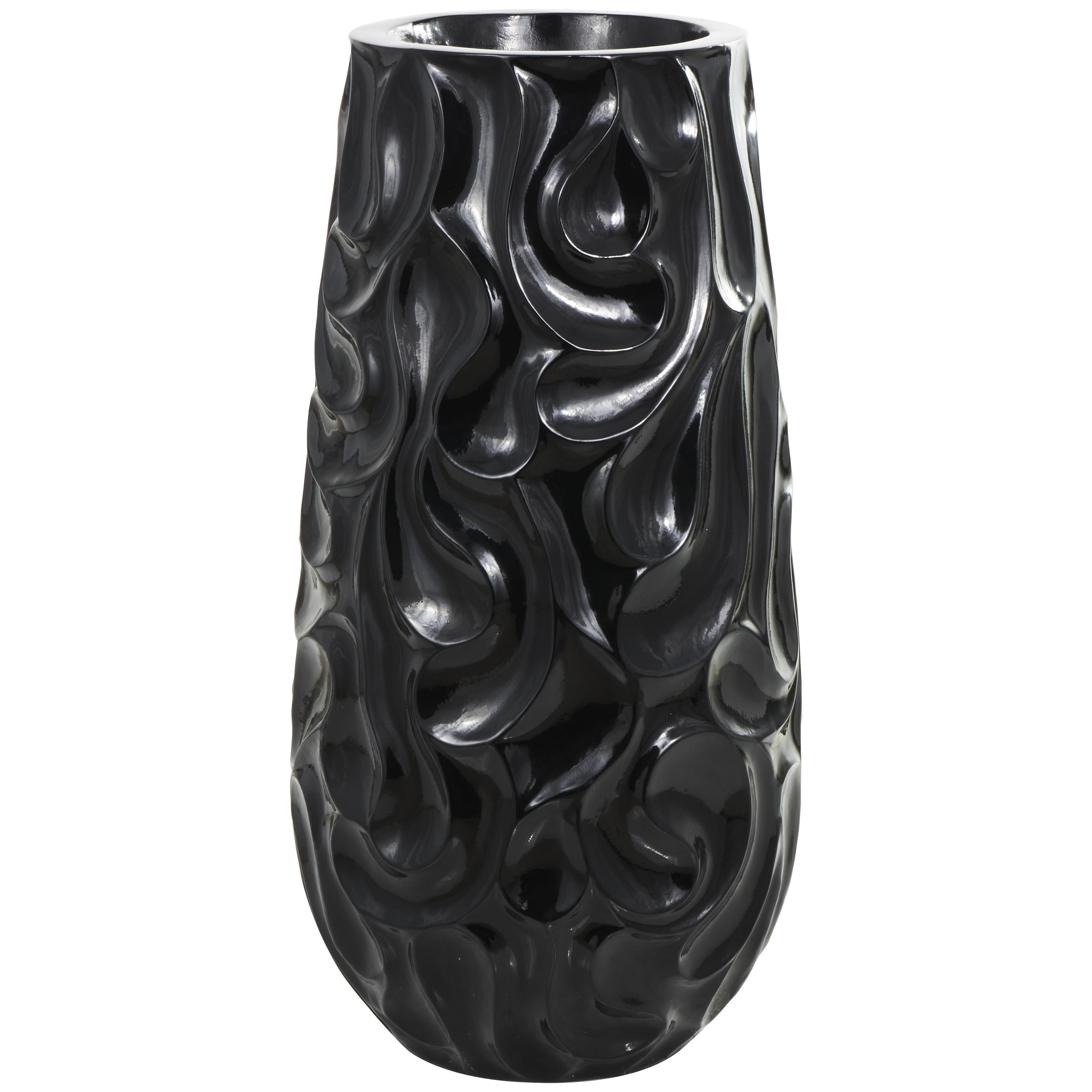 •Its round shape is complemented by an abstract wavy pattern that gives this polished vase for dried flowers an edgy, modern look while maintaining its classic functionality
