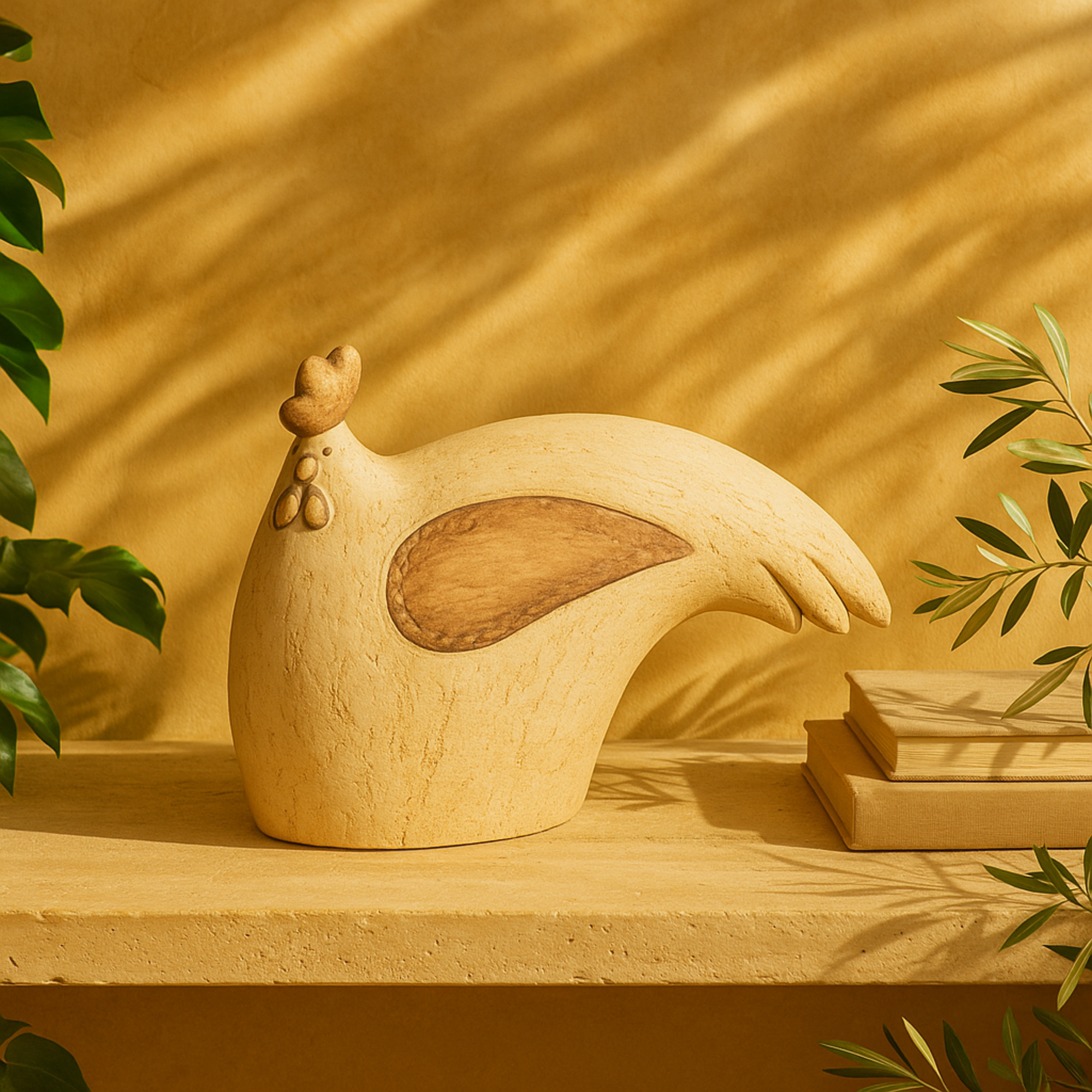 •The textured outdoor decorative sculpture captures the graceful shape of a sitting rooster, adding a touch of sophistication to any garden
