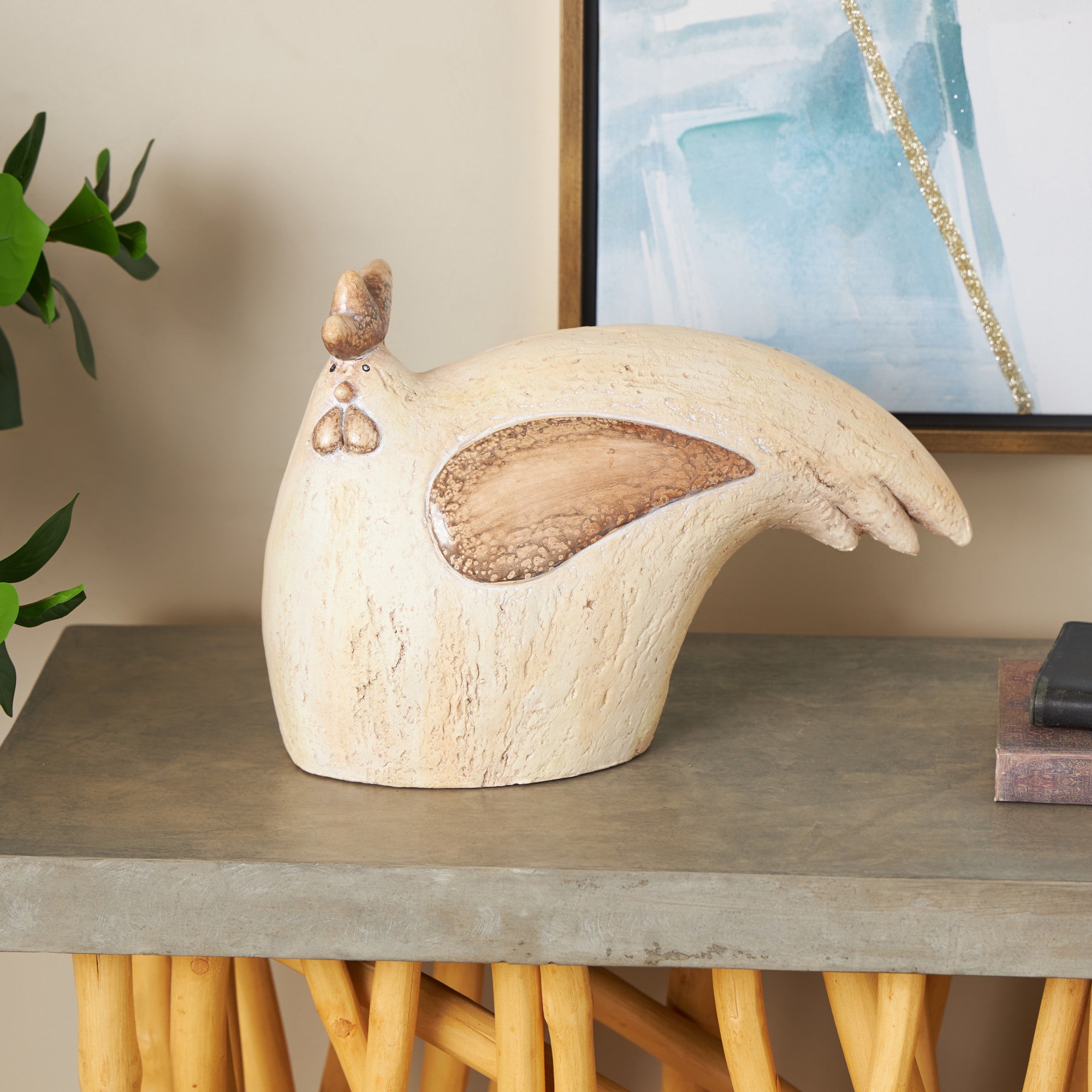 Rooster Cream Magnesium Oxide Sitting Decorative Garden Sculpture with Brown Accents