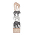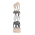•Matte multicolored home decor figurine displays a stack of wild animals that include an elephant, zebra, lion, and giraffe standing on one another atop a thick oval platform with floral-carved patterns