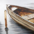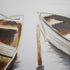•Frameless relaxing boat canvas wall art showcasing two empty wooden boats parked near a river dock captures tranquility